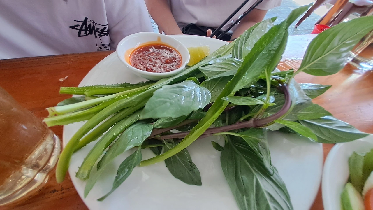 베트남은 어디에서나 소고기 국수는 실패하지 않는다. 고수 등 향신 채소를 따로 접시에 담아내오는 센스. 물론 비누맛 나는 채소는 손도 대지 않았다.