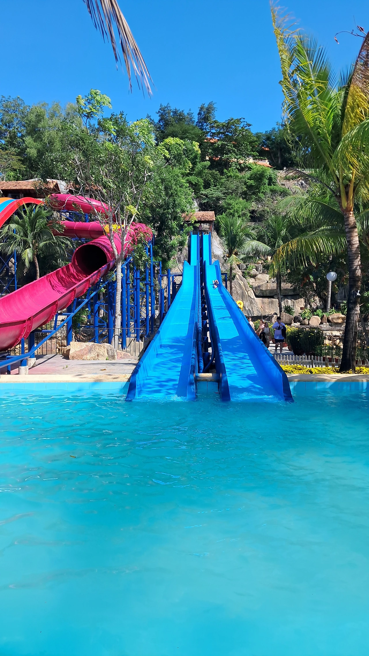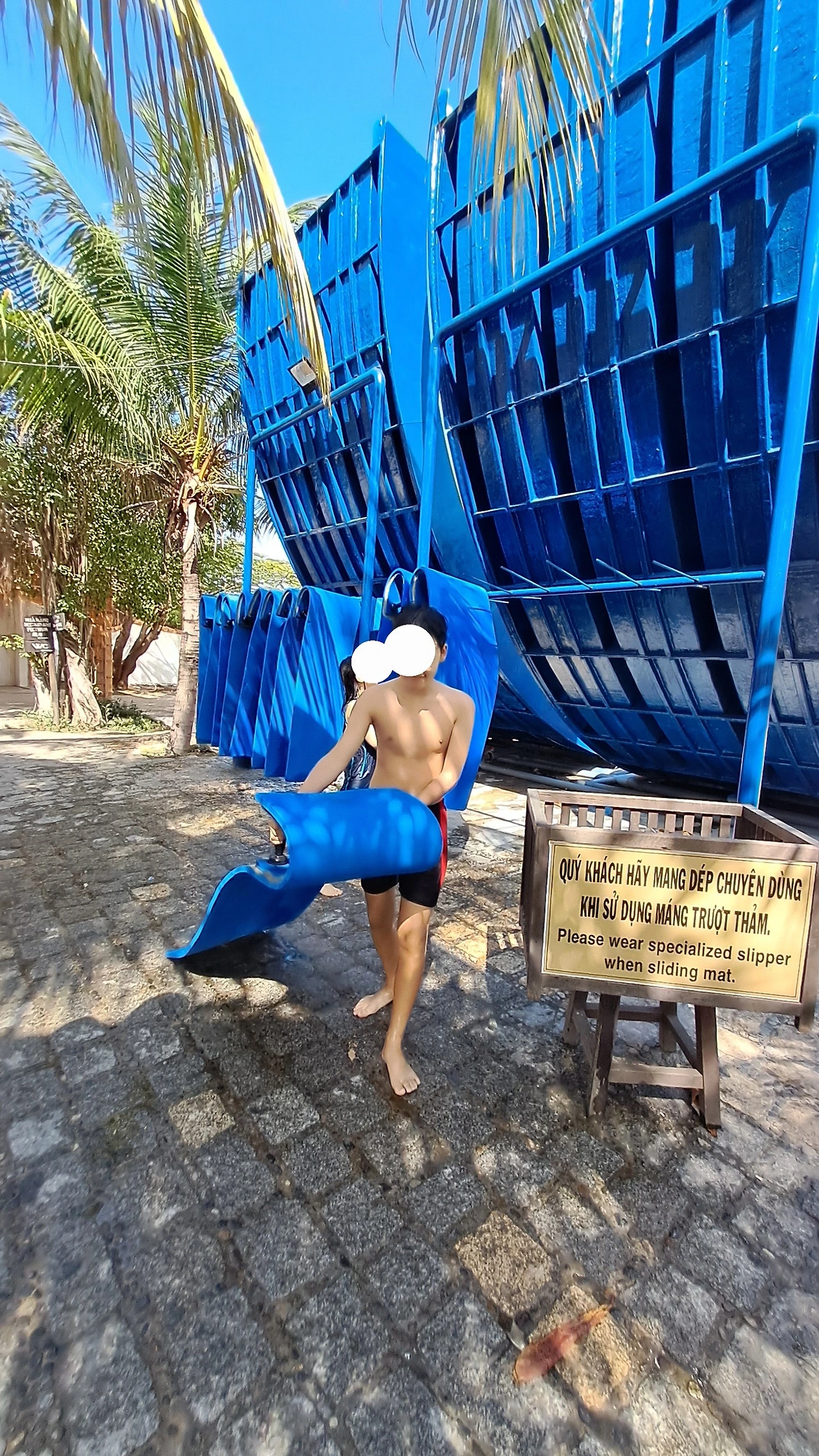 초등 딸과 중학생 아들은 신나게 세 종류의 워터 슬라이드를 탔다. 남편은 한 종류의 워터슬라이드는 탔는데 난이도 높은 건 못 탄다고 제지당했단다. 몸무게가 71kg인데 70kg까지 밖에 못 타게 한다고 속상해한다.베트남에서 제대로 놀려면 안전을 위해 살도 빼야 한다.