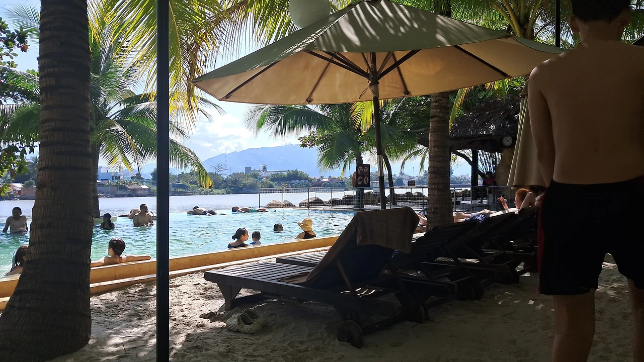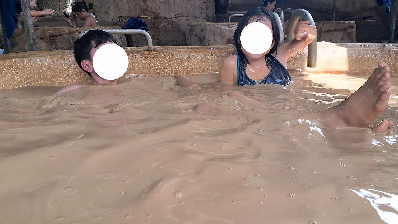 아침 일찍 무이네에서 나트랑으로 이동했다. 낮 12시에 도착해서 나트랑 "아이 리조트(i resort)에 입장했다. 입장료는 1인당 28000원 정도였는데 20분의 머드 온천과 워터 슬라이드 등의 이용권이 포함된 거였다. 클룩에서 예약했다고 한다.한가족이 한 머드온천탕에 들어가서 이용하는 식이었다.달랏 캐녀닝, 무이네 사막체험을 한 뒤라 괜찮은 체험 구성이라 생각했다.
