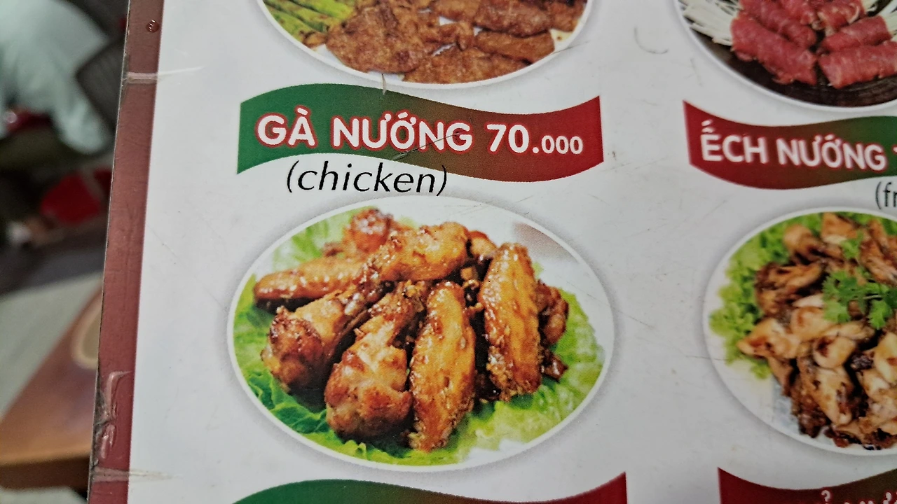 치킨(불에 구워서 굽네치킨 비슷했다. 맛있어서 탁월한 선택이라고 했다) 7만 동(4000원)