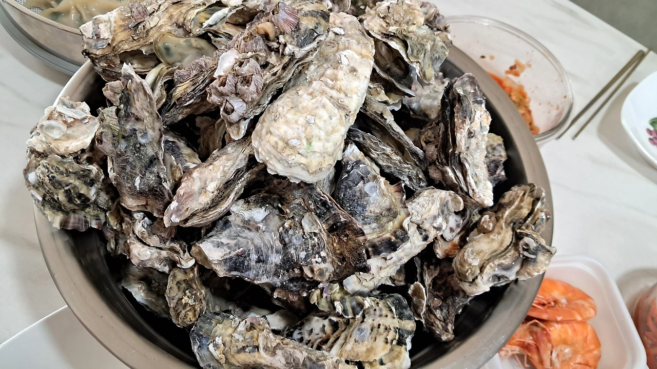 따로 전을 부치지 않기에 우리 집은 즉석으로 먹을 음식을 한다. 매년 농수산물 시장에서 싱싱한 굴 한 망과 새우를 사서 푹 삶는다. 남편이 큰 솔을 사용하여 굴 표면을 박박 씻어 닦는다. 한 시간 넘게 쭈그리고 앉아 씻는다. 그 정성이 대단하다. 올해 농수산물시장 굴맛은 별로인데 새우만큼은 초장에 찍어먹으니 달디달다. 달다는 것 이상인데 표현할 단어가 없다.