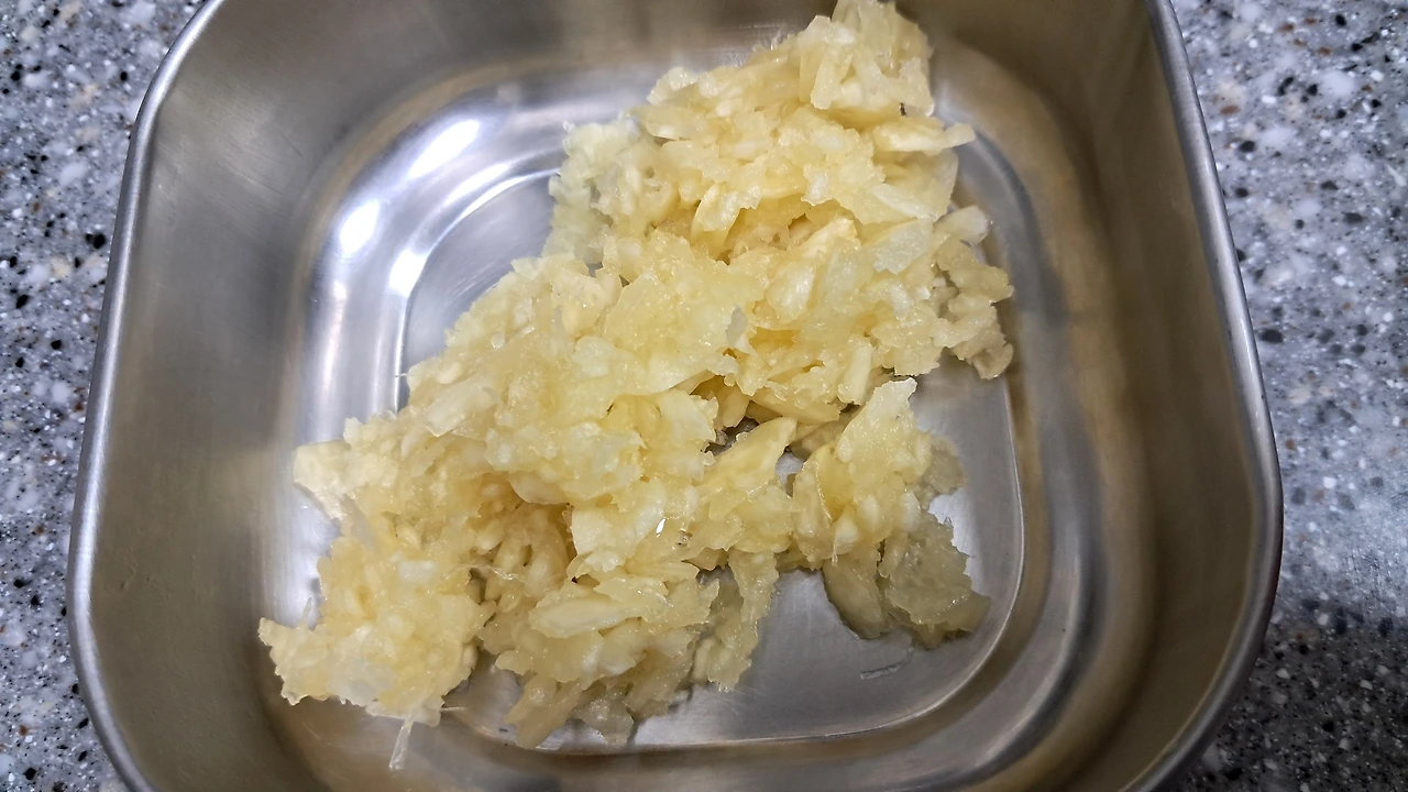 4. 마늘을 다져서 한 스푼 반을 준비하고 대파 2대는 어슷 썰어 준비한다. 맛소금, 설탕, 액젓을 준비해 넣는다. 맛소금 1스푼, 설탕 3스푼, 액젓 3스푼. 어머님께서 맛소금을 낮은 목소리로 말씀하신다. 맛있으면 미원, 다시다 등 MSG를 넣어도 상관없기에 맛소금쯤이야 괜찮다.