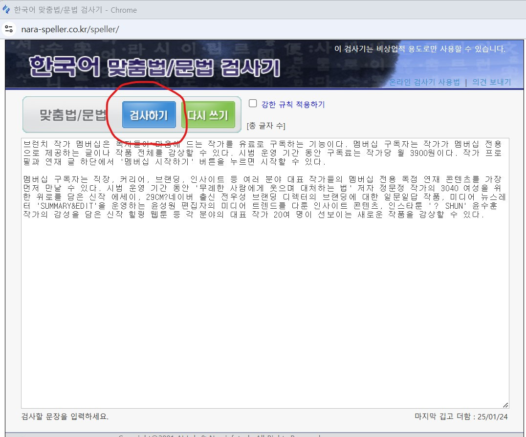 기획서, 보고서, 원고 등을 다 작성한 후에 한 단락씩 복사하여 붙여 넣기 하면 오타 등을 잡아준다. 물론 작성자가 여러 번 소리 내어 읽고 문맥까지 다 검토한 후에 최종 오타를 수정할 때 배움터를 사용한다.
