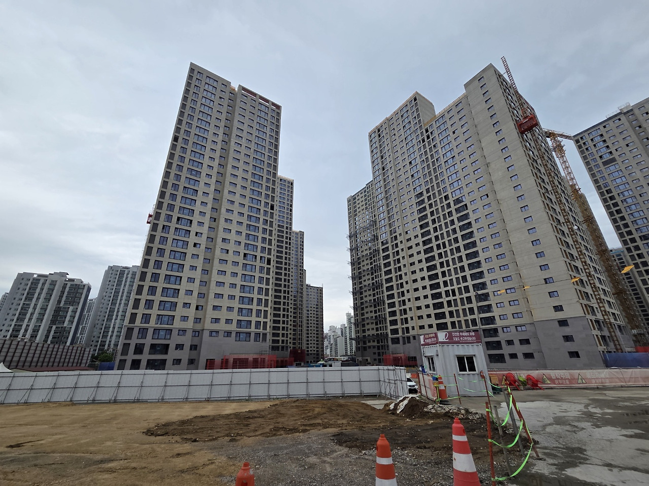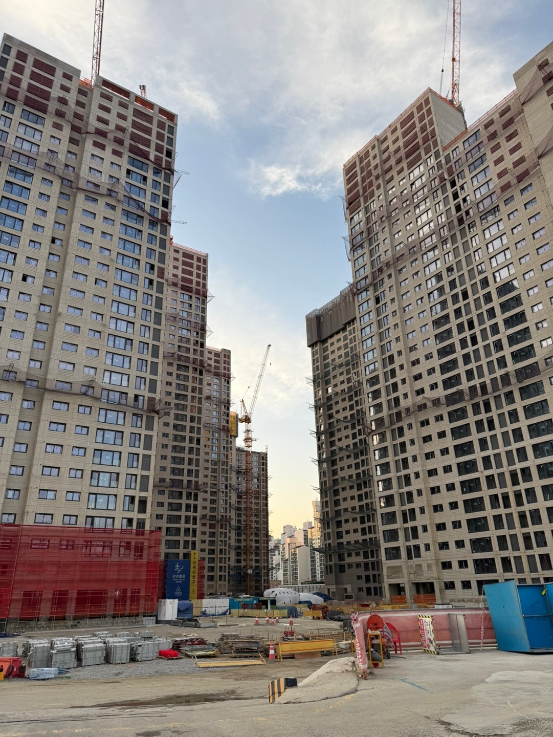 대형 건설 3사가 합작하여 아파트 건설을 시작한다. -> 청약통장을 활용한 일반분양 공고를 내고 분양을 완료한다. -> 웹서핑을 통해 오늘 34층 중 32층까지 건설이 완료되었음을 확인했다. -> 내년 봄에 입주라고 한다.