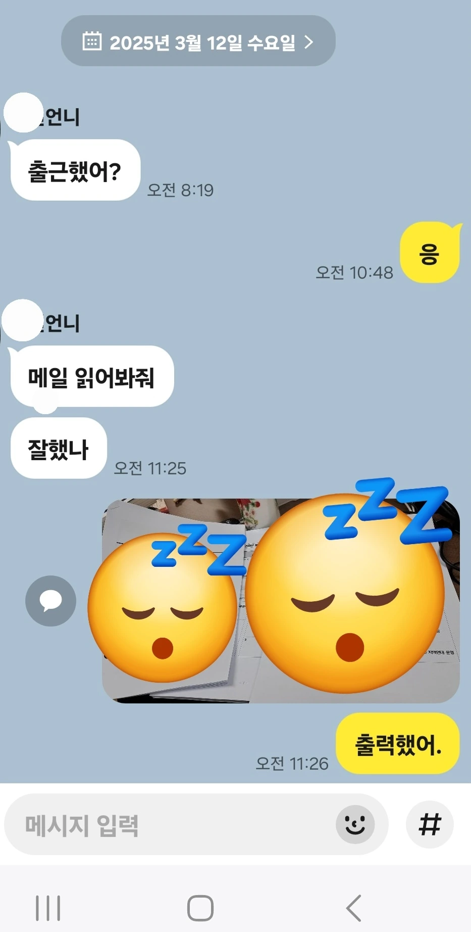 핸드폰을 꺼놨는데.... 컴퓨터 PC 카톡으로 메시지가 와있다..."출근했어?"ㄷㄷㄷ