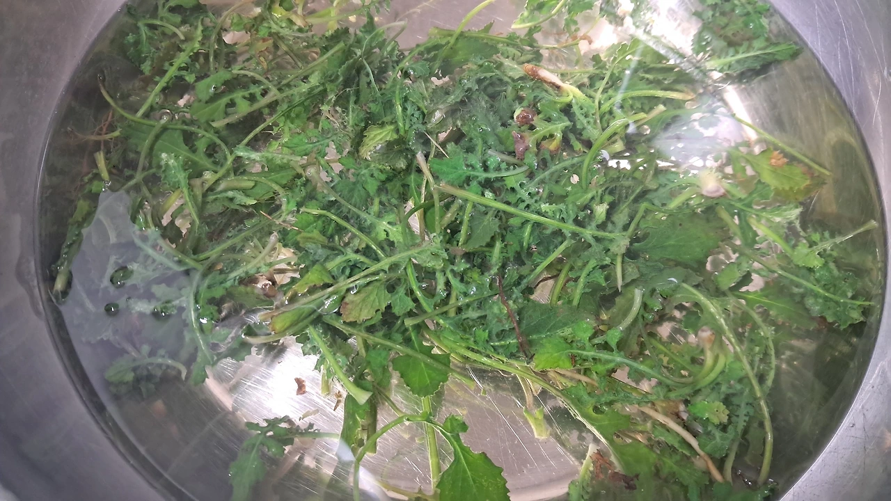 원칙이 있는데 봄나물은 딱 한 접시 한 끼 해먹을 분량만 캐기. 모든 들나물은 종류와 조리법에 상관없이 데쳐서 활용하기이다. 다음을 기약하며 냉동실에 데친나물을 저장하지 않는다. 이번 지칭개도 딱 한 접시 여린 것을 캤다.
