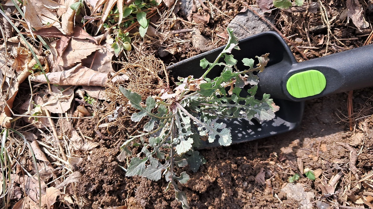 봄에는 호기심을 자극하는 게 바로 봄나물이다. 금요일 햇살을 받으며 점심 산책하다 청정 구역에서 여린 지칭개를 캤다. 종이쇼핑백과 과도, 모종삽이 항상 차 안에 있다. 봄나물 캐기 도구이다.