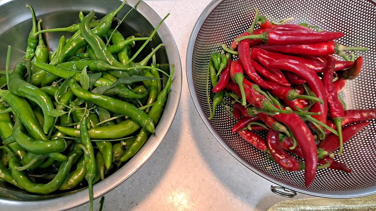 가지는 고구마튀김처럼 튀겨볼 생각이다. 풋고추는 남편에게 슬쩍 내밀며 간장조림으로 만들어달라고 해야겠다. 직장 도시락 반찬으로 제격이다.
