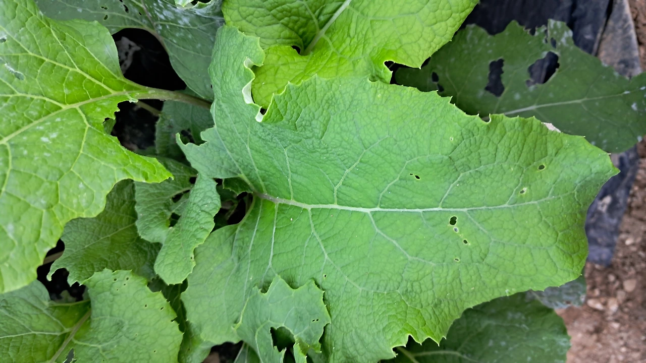 봄에 심어놓은 작물 중에 잎우엉, 가지, 토란, 고추, 부추가 여전히 잘 자라고 있었다
