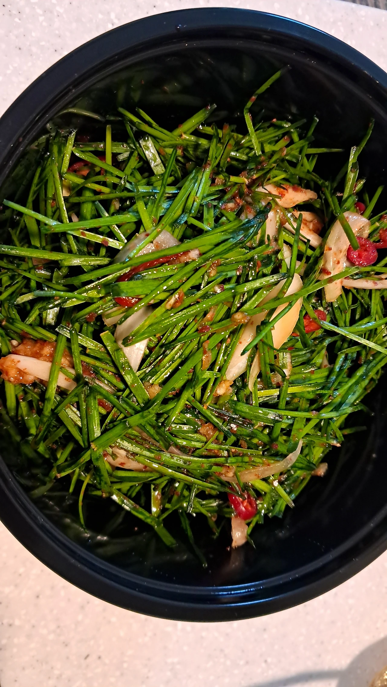 귀가하여 5분 만에 만든 부추 겉절이. 밀가루풀은 쑤지 않았다.