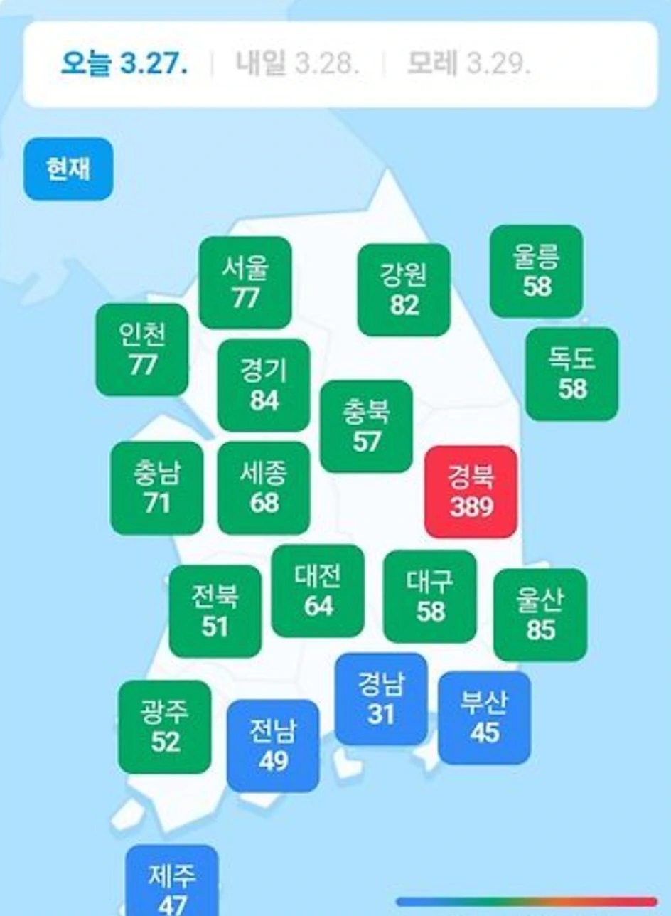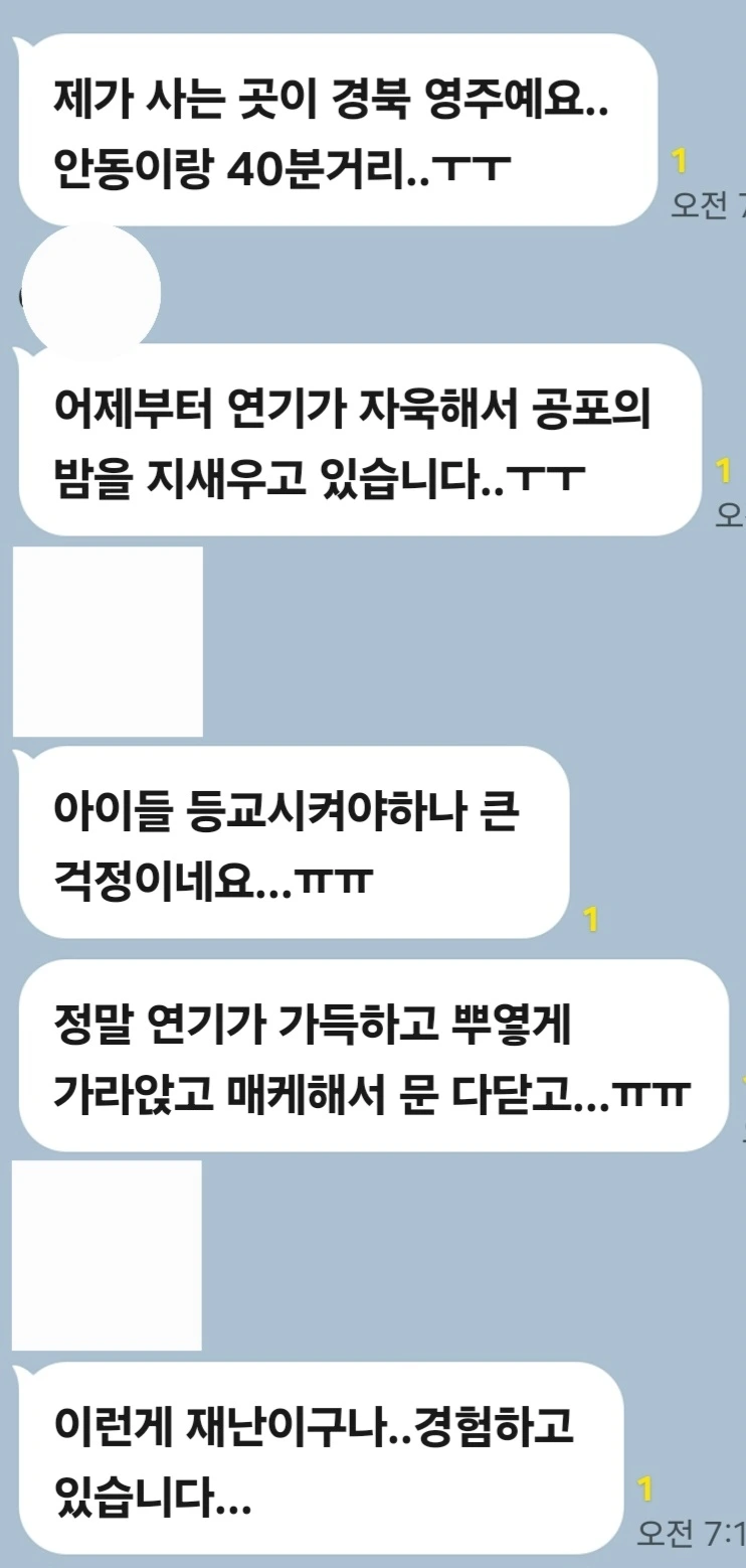 숨을 쉬고 일상을 살아가는 게 더 이상 죄스럽지 않은 세상이었으면 한다. 왜 일기예보에는 경북지역에만 비가 내리지 않는다는 건지... 걱정이다.