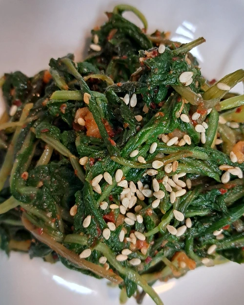 뽀리뱅이를 생겉절이로 먹으면 상큼하다고 한다. 들에서 캔 나물은 달래를 제외하고는 모두 데쳐서 활용한다. 데쳐서 뽀리뱅이 나물을 만들어봤다. 만드는 방법은 시금치나물 무치는 방법에 고춧가루, 고추장만 추가했다. 매년 봄나물을 종류별로 딱 한 접시만 해 먹는데, 매일 도시락을 2개씩 싸서 다니기에 소비에는 문제가 없다.