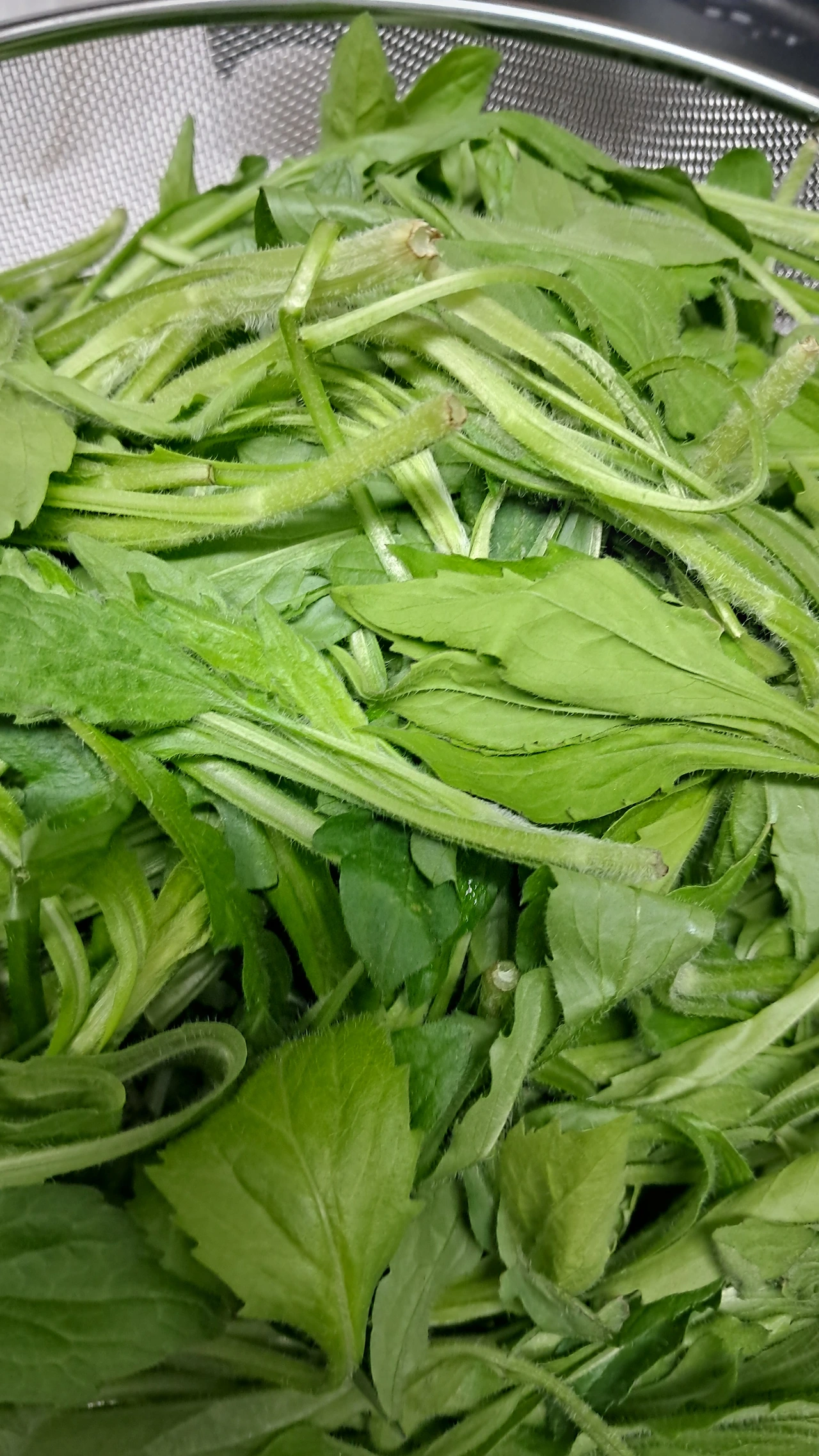 개망초, 어렸을 때 풍년대라고 들은 것 같다. 시금치보다 맛있는 나물이다. 중학생 딸이 뽀리뱅이, 민들레, 개망초 나물을 먹어보더니, 개망초 나물이 가장 맛있다고 한다. 퇴근하고 딸과 산책하며 딱 한 접시 분량의 개망초를 채취했다. 개망초가 맛있는 걸 아는 사람들이 많은가 보다. 이미 뜯어간 흔적이 많다. 더 위쪽으로 올라가 아무도 손대지 않은 개망초 여린 부분을 뚝뚝 끊었다.