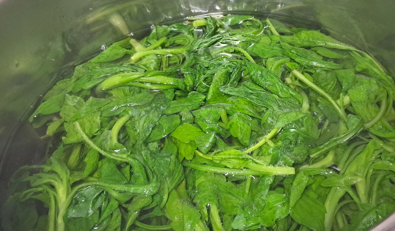 1) 깨끗하게 씻어 소금 조금 넣고 끓는 물에 데친다.