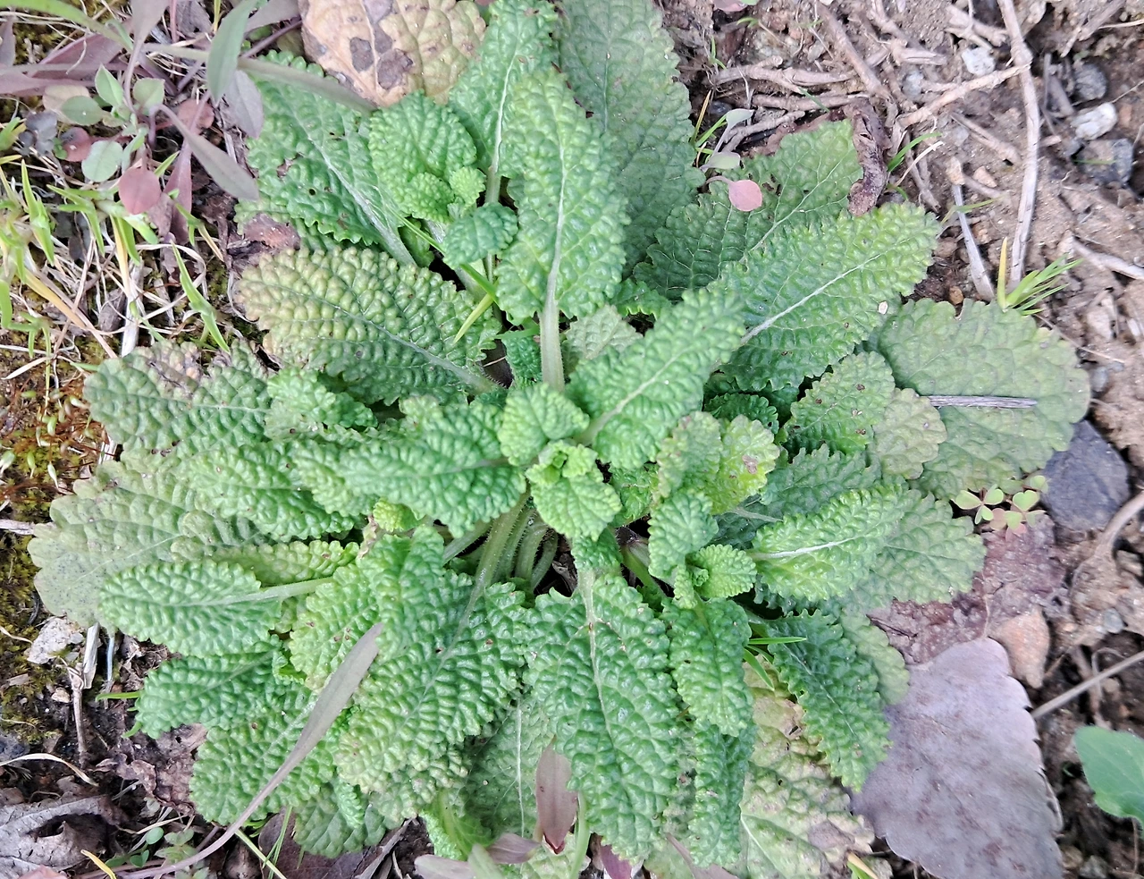 배암차즈기는 곰보배추다. 잎이 오돌토돌 곰보자국 모양이라고 해서 이름 붙여졌다. 노란 잎은 겨울을 이겨낸 잎이고, 위에 초록 잎은 새롭게 돋아나는 잎이다. 촉촉한 땅에서 겨울을 이겨내는 해넘이 한해살이다. 배암차즈기는 대기오염, 시멘트-콘크리트의 도시화 또는 산업화 환경에서는 발견되지 않는 생태환경 지표종이라고 한다(한국식물생태보감).