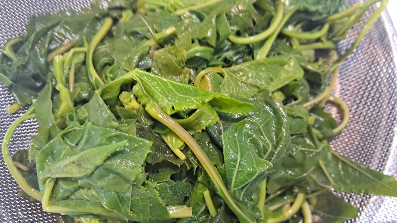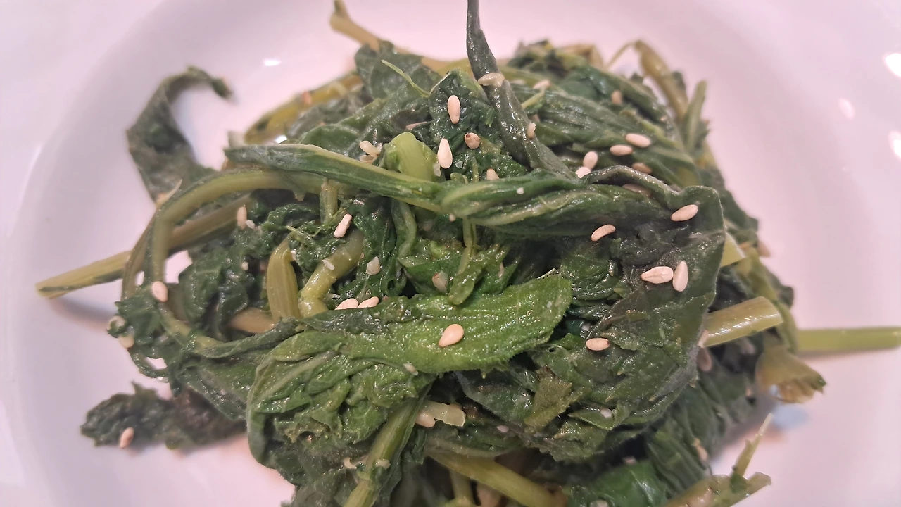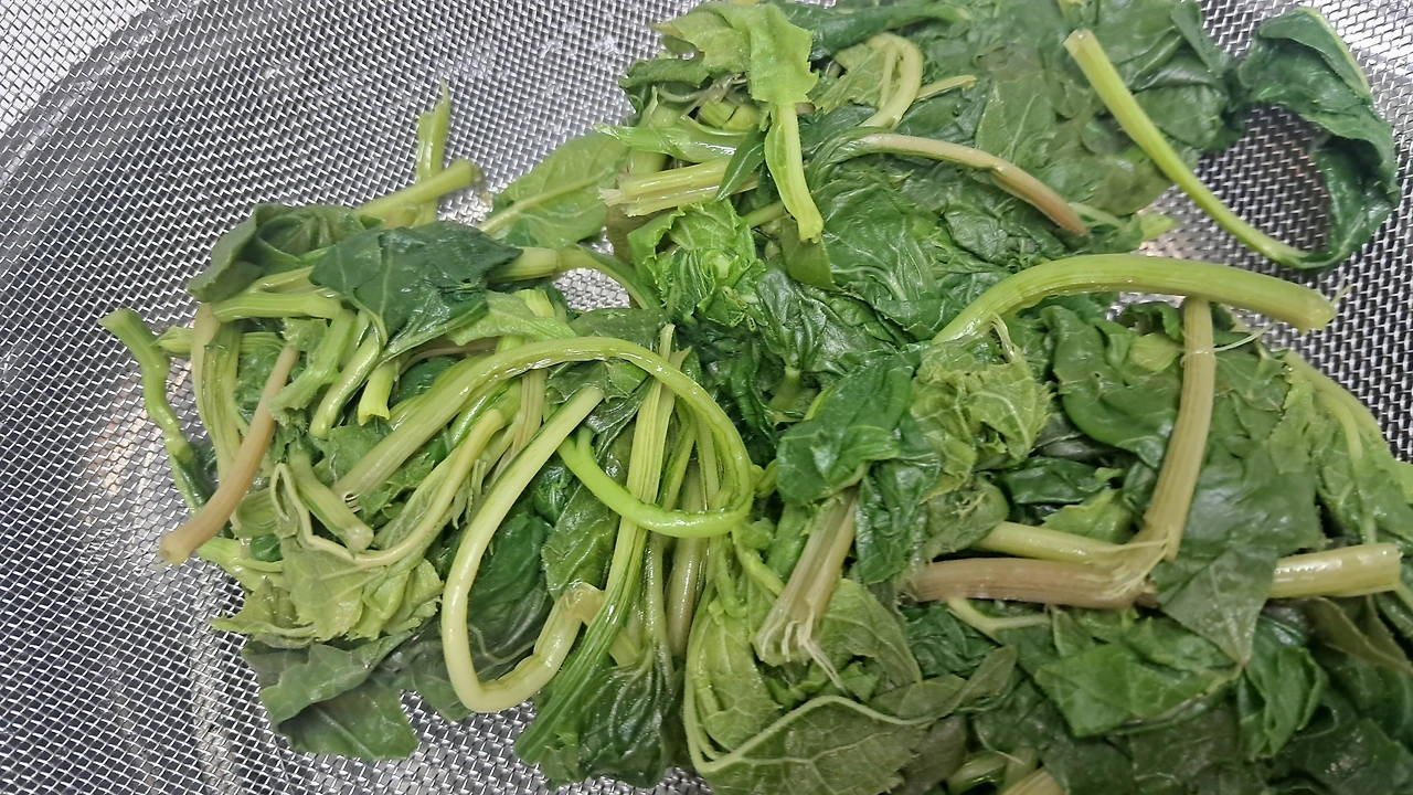 주로 삶아서 말린 묵나물을 들기름에 볶아 주셨던 기억이 있다. 네 편의 취나물 요리 유튜브 영상을 봤다. 취나물에 마요네즈를 넣는 레시피도 있었다. 유튜버 '땅끝마을임선생'의 레시피대로 큰 줄기는 다듬어서 버렸다. 3분간 푹 삶아서 물기를 적당히 짰다. 설명대로 절구에 찧은 참깨, 들기름 듬뿍, 국간장만 넣어 흰 물이 나오도록 빠락빠락 조물거렸다. 싱겁다. 소금을 아주 살짝 쳤다. 취나물이 몸속 나트륨을 배출한다는데 나트륨을 추가한 꼴이다. 맛은 있었다. 뭐든 간이 알맞아야 맛있다. 건강한 맛이다. 몸속 기름 찌꺼기를 다 닦아낼 것 같은 질감과 식감이다.