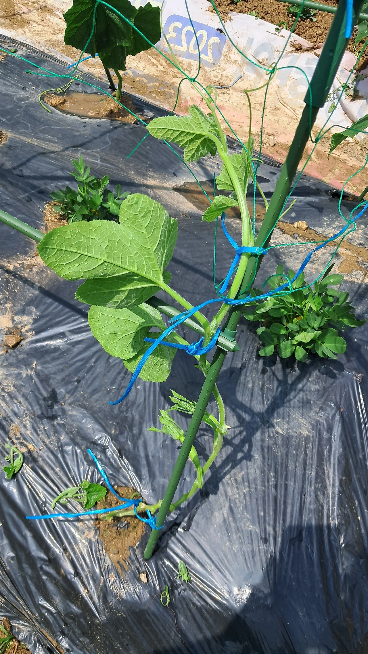 1주일 전쯤, 분명 잎채소를 줄기만 놔두고 다 수확해 버렸다. 또 뻥튀기가 되어 있다. 오이는 초보 주인을 잘못 만나 무게를 견디지 못하고 축 늘어져있다. 지금이라도 아들 곁순을 제거하고 어미 줄기를 지지대에 묶어 위로 타고 올라가도록 유인해 줬다. 호박 역시 집중해서 줄기를 관찰하니, 어떤 아들 줄기를 없애고 어미 줄기를 살려야 할지 감이 왔다. 애호박의 줄기 역시 지지대에 고정시켜 타고 올라가도록 유인했다.