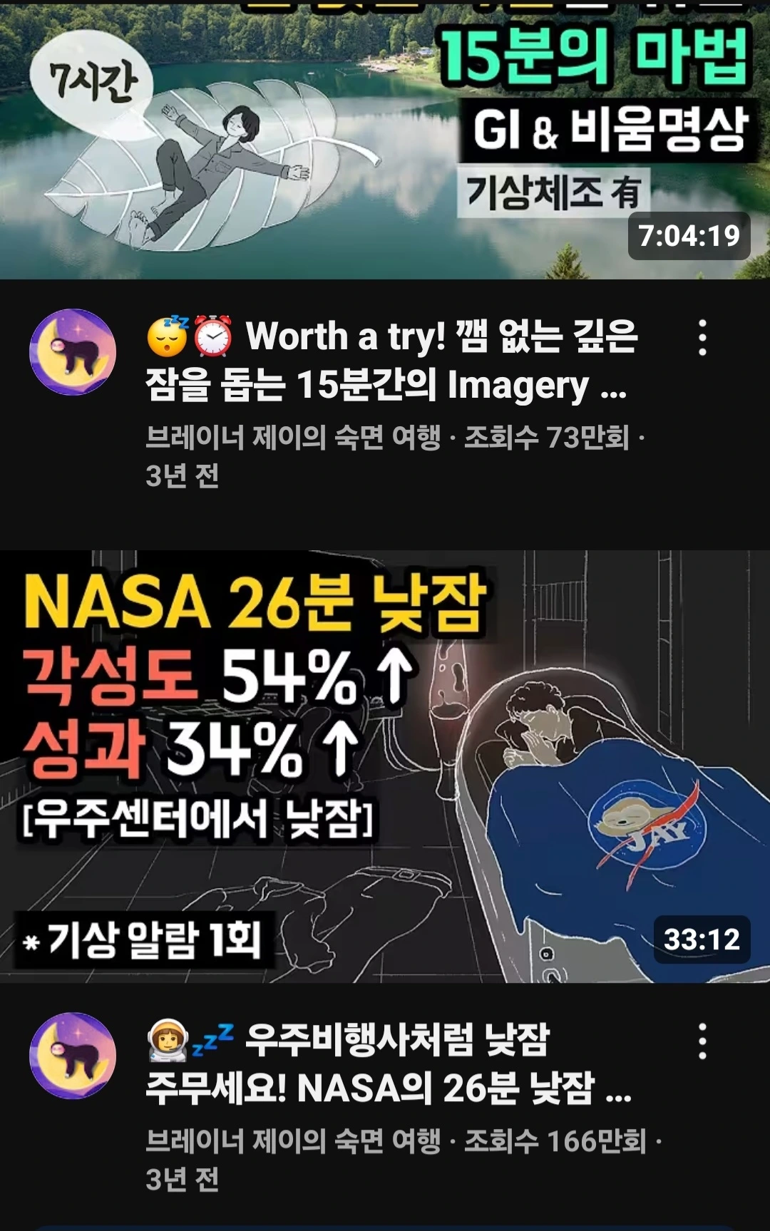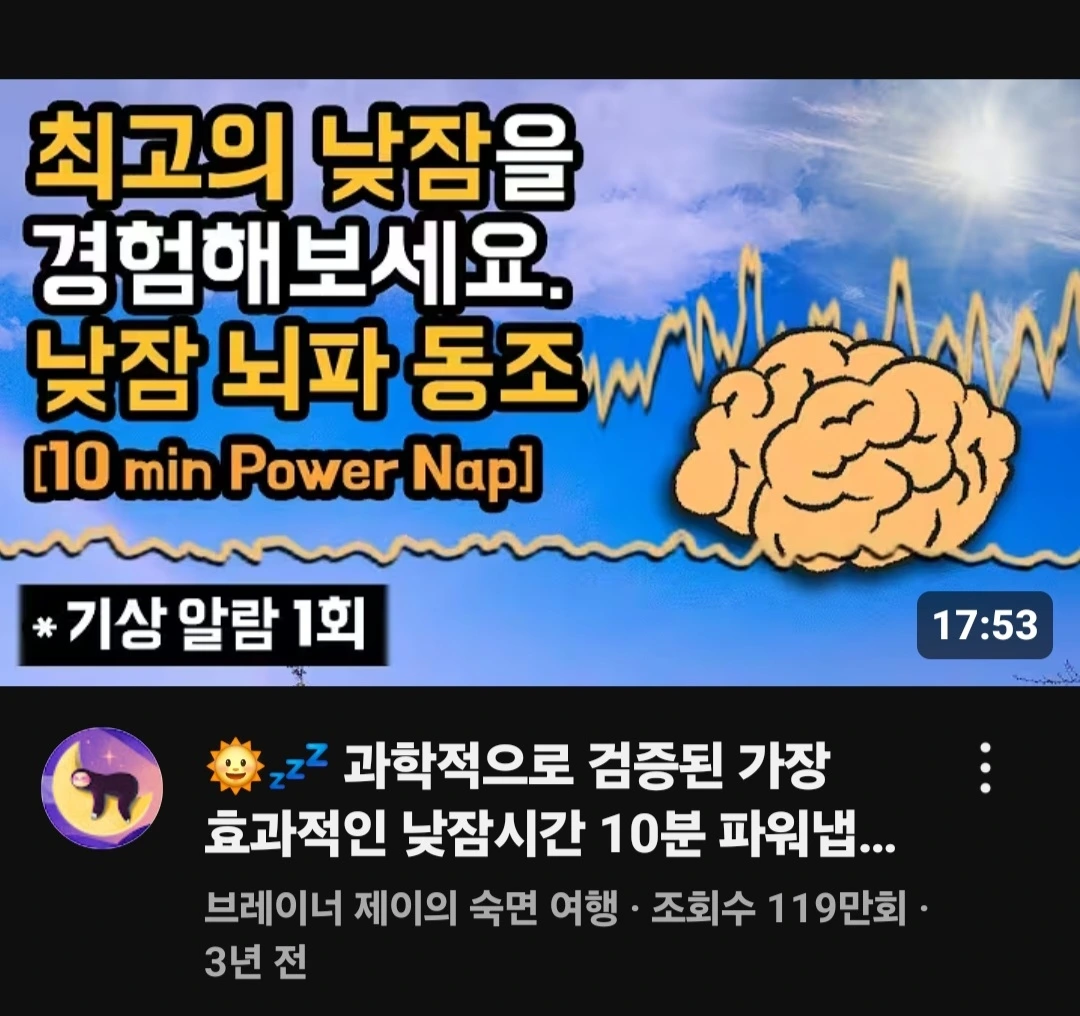유튜브에서 검색어 "브레이너 제이의 파워냅 10분 또는 15분짜리" 잠 잘옵니다. 몰래 주무셔요.