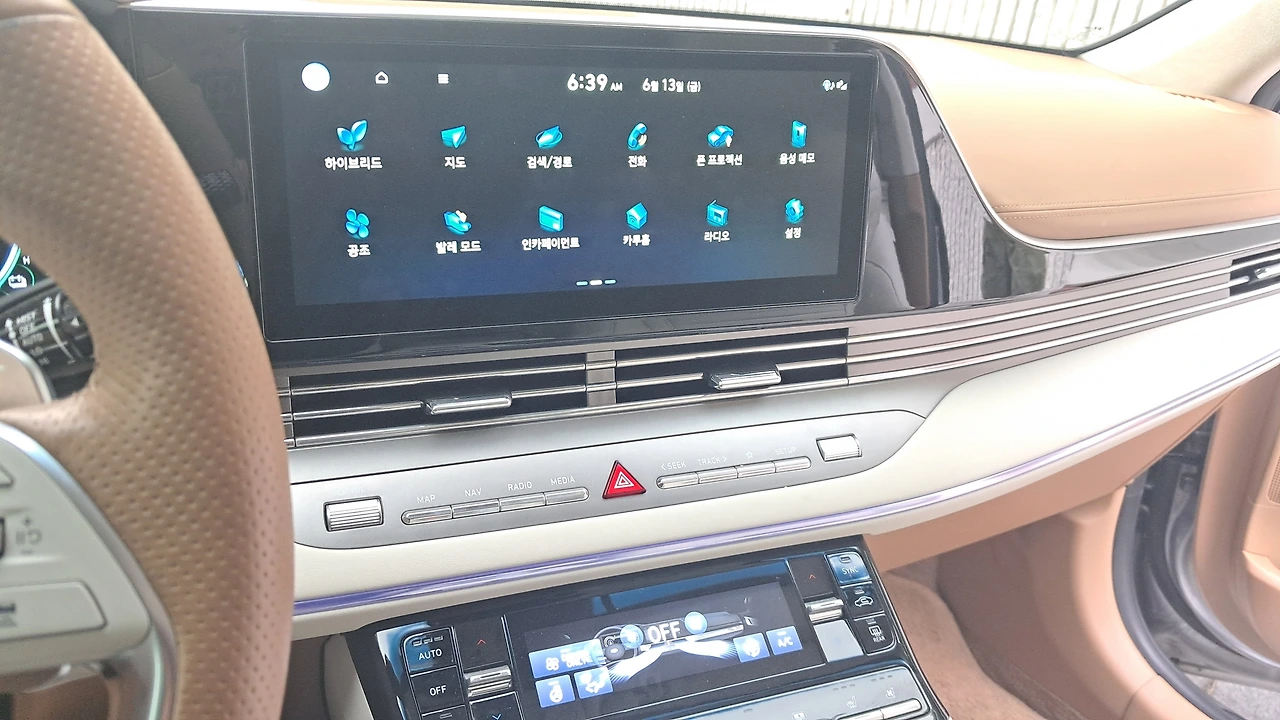 그래서 결정한 게 2020년식 하이브리드 그랜저다. 기업의 임원 전용으로 사용하다 파는 거라 차량 내부에 두 군데 정도 미세 기스밖에 없다. 풀옵션이 장착되어 있었고 주기적 차량 관리가 되어 있었다. SUV보다 차량 내부가 넓고 승차감이 좋은듯 하다. 신차 가격의 절반값을 주고 구입했다.