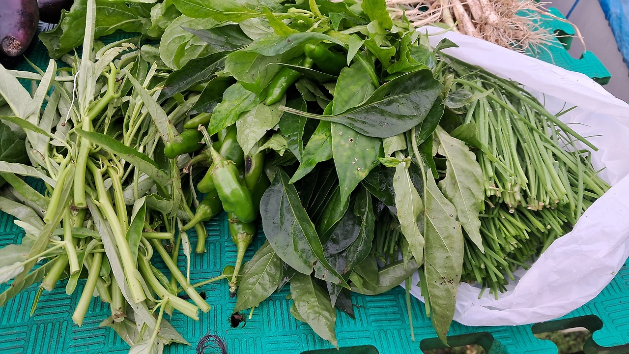 11. 오늘의 텃밭 장보기 : 가지, 아욱. 새싹, 모닝글로리, 대파, 루꼴라, 고춧잎, 부추, 잎우엉