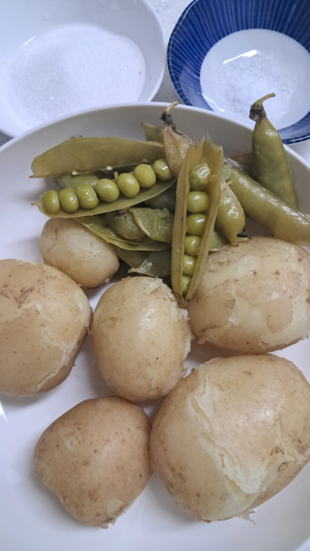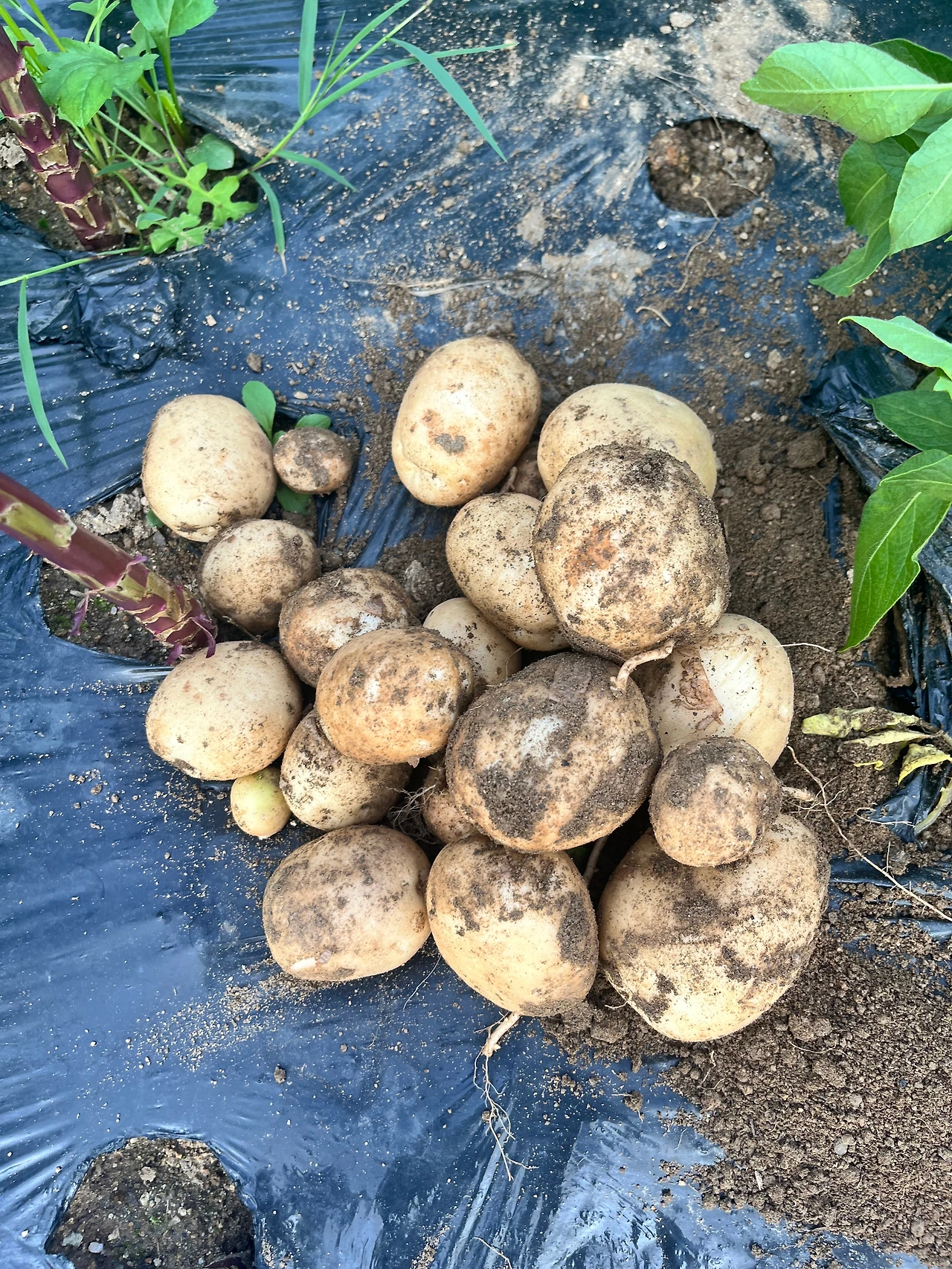 6월 하지에 감자를 캐는데, 초기 기온이 불안정하여 늦게 심었다. 감자는 줄기가 노랗게 시들해져야 캘 수 있다. 그런데 아직 줄기가 쌩쌩하게 녹색이다. 딸이 계속 감자를 캐보고 싶다고 해서 한 뿌리만 캐보라고 했다. 한 뿌리를 캐보더니, 신기하고 재미있다며, 두 뿌리, 세 뿌리, 계속 뽑아보고 싶단다. 두 뿌리까지만 허락해 줬다.