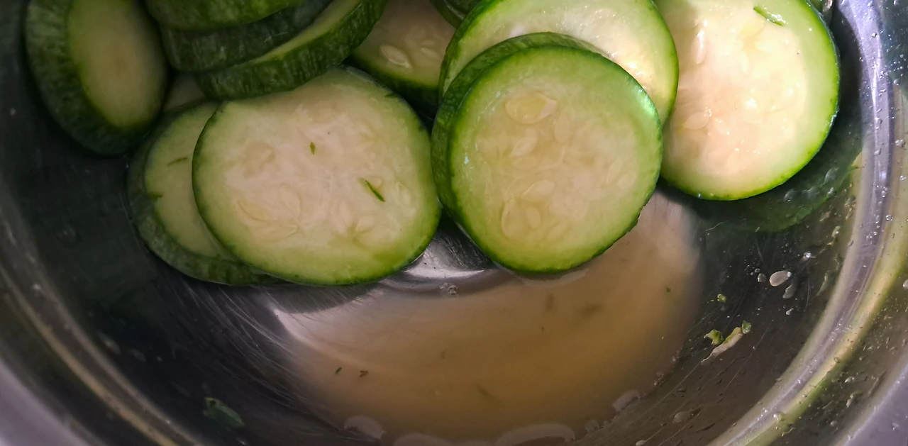 그래서 '애호박전'을 만들기로 했다. 여러개의 유튜브 레시피를 본 끝에 김대석 셰프의 애호박전을 따라 해보기로 했다. 레시피의 '킥'은 새우젓 국물 한스푼과 빵가루. 그런데 막상 새우젓이 안보인다. 냉동실 깊숙한 어딘가에 있을 텐데, 찾는 걸 포기하고 까나리 액젓으로 대체했다.