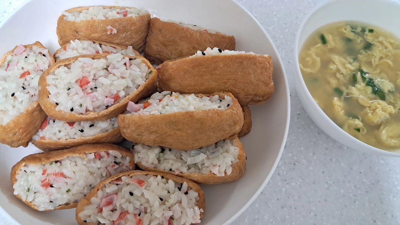 중학생 아들의 2차 지필평가 마지막 날이다. 3일 동안, 7과목의 시험을 치렀다. 남편이 준비한 아침 메뉴는 유부초밥과 계란국이다. 아들이 간단히 먹고 가기 좋은 메뉴로 정했다고 한다. 아들 6개, 나 5개, 딸 5개의 유부초밥을 먹으라고 하며, 출근했다.
