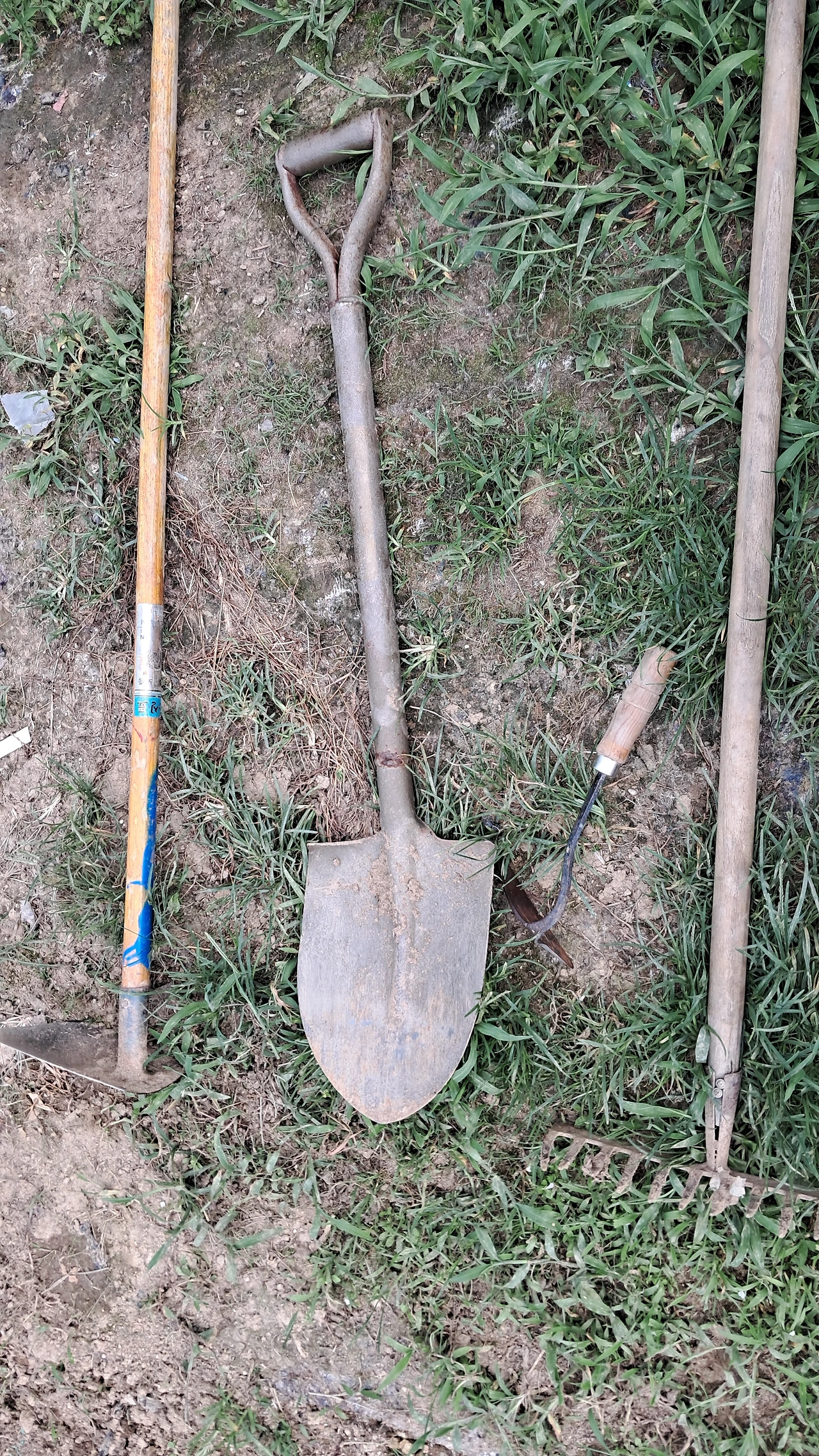 텃밭 농기구 보관처에서 필요할 것 같은 연장 3개를 챙긴다. 이름이 뭔지도 모르겠다. 삽, 갈퀴처럼 생긴 것, ㄱ자 주걱 같은 것. 어떤 용도로 쓰는지 모른다. 감각으로 사용방법을 만들어보기로 했다.