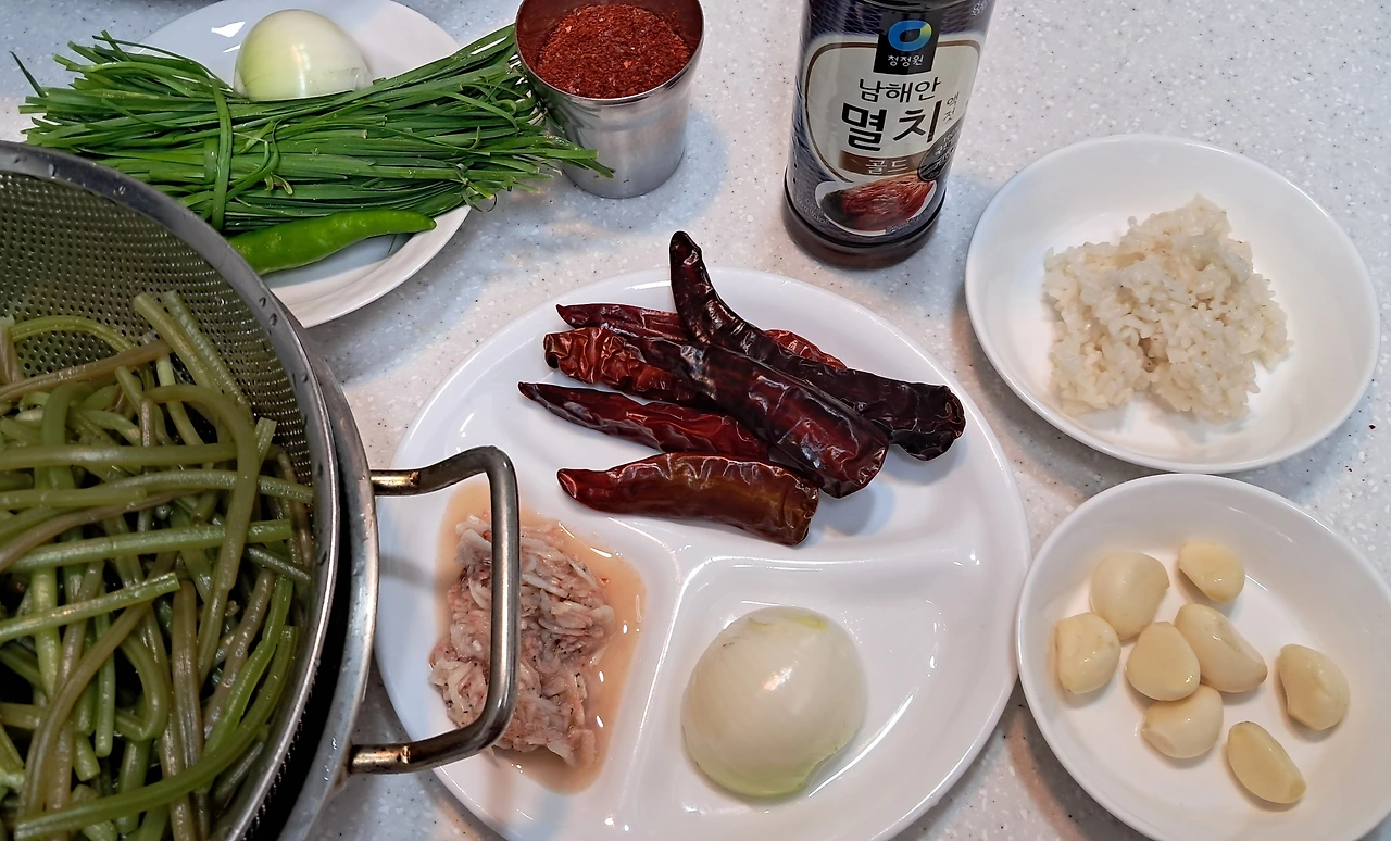 <고구마순 줄기 김치 재료>