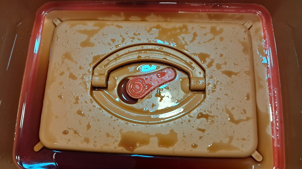 4) 절임통의 누름틀로 꾹 눌러준다.(작은 사각접시나 누름돌도 OK)
