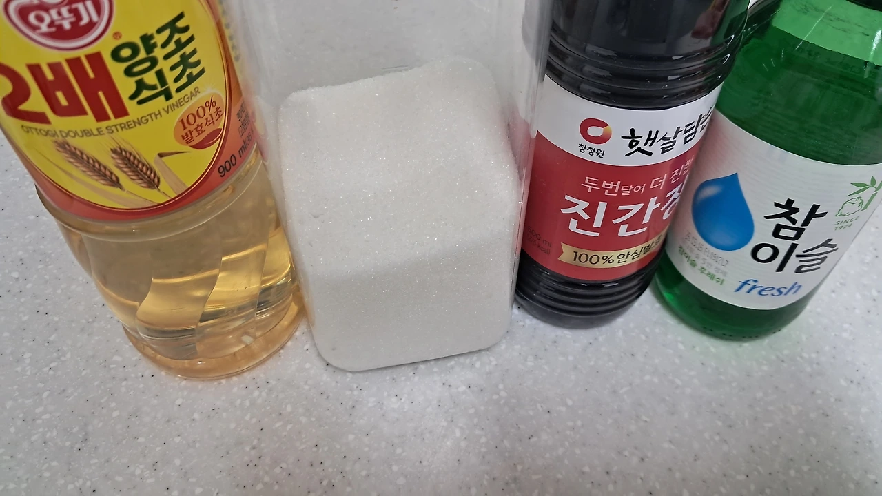 나와 생각이 같은 요리 유튜버를 찾아 그분의 레시피대로 만들었다. 간장, 설탕, 식초, 소주를 배합하는 방식이었다. 계량도구는 물기 없는 밥그릇을 활용했다.