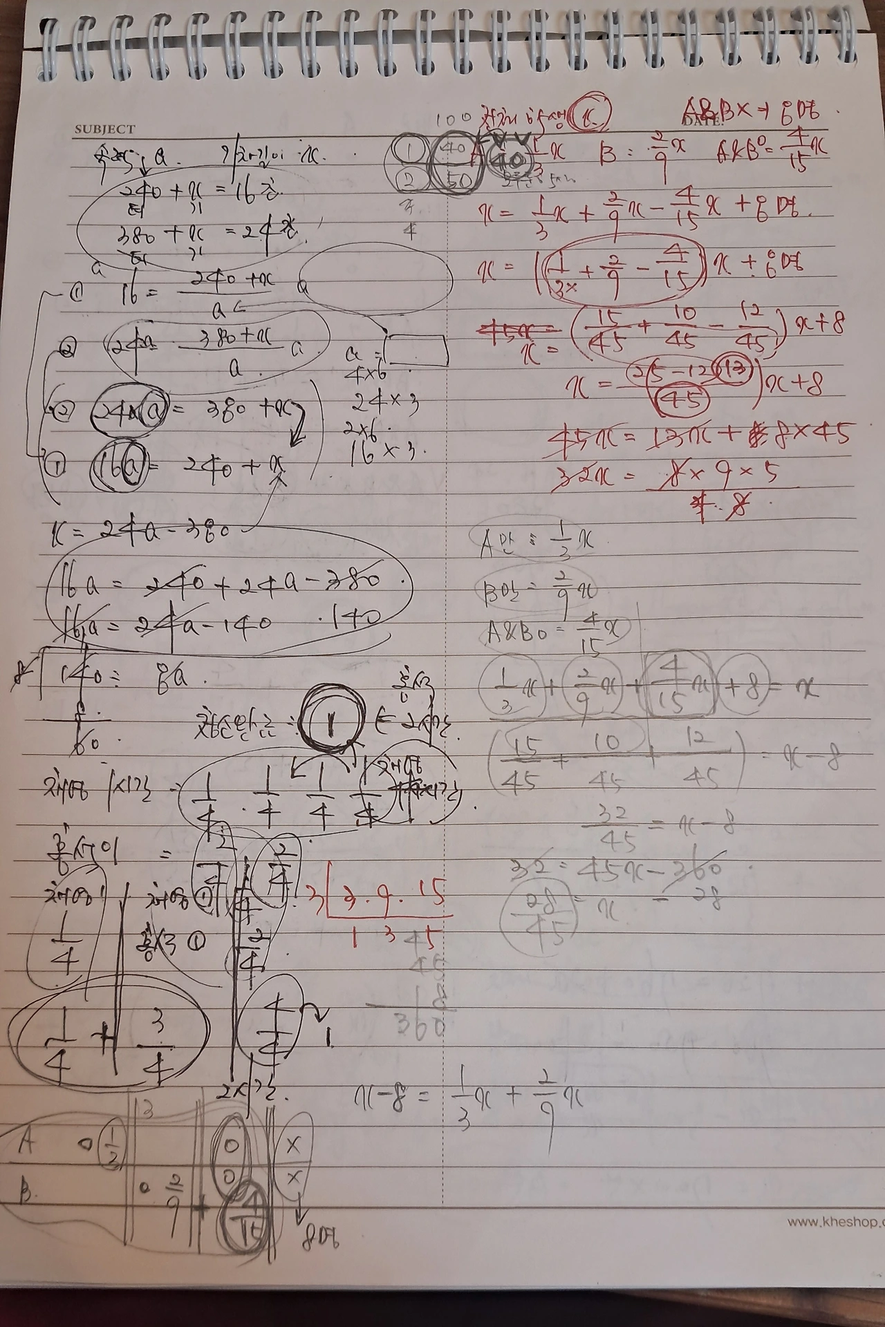 가끔 수학을 풀다가 요리 레시피를 적어놓기도 한다. 중국식 비빔밥을 연구중이라더니, 수학문제 풀다가 레시피를 연구했나보다.
