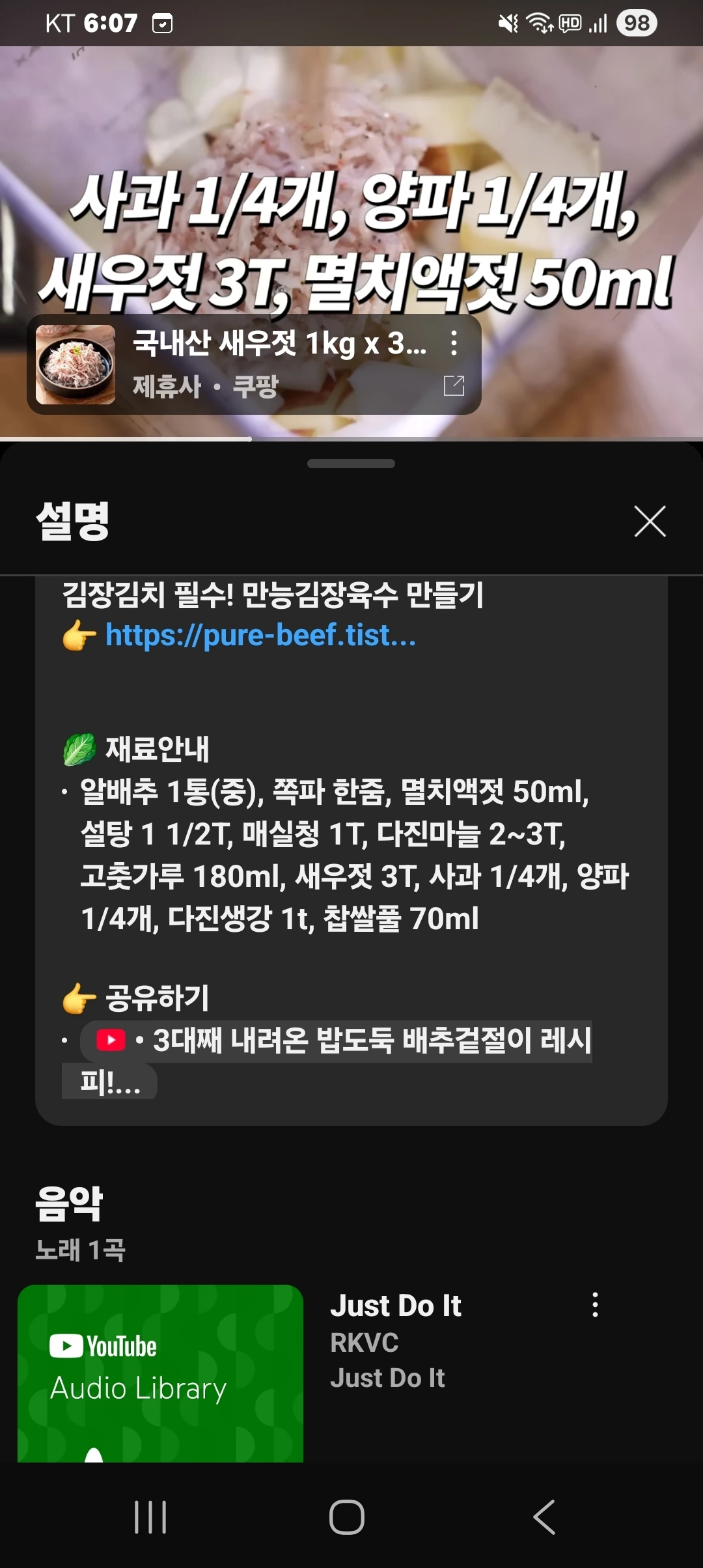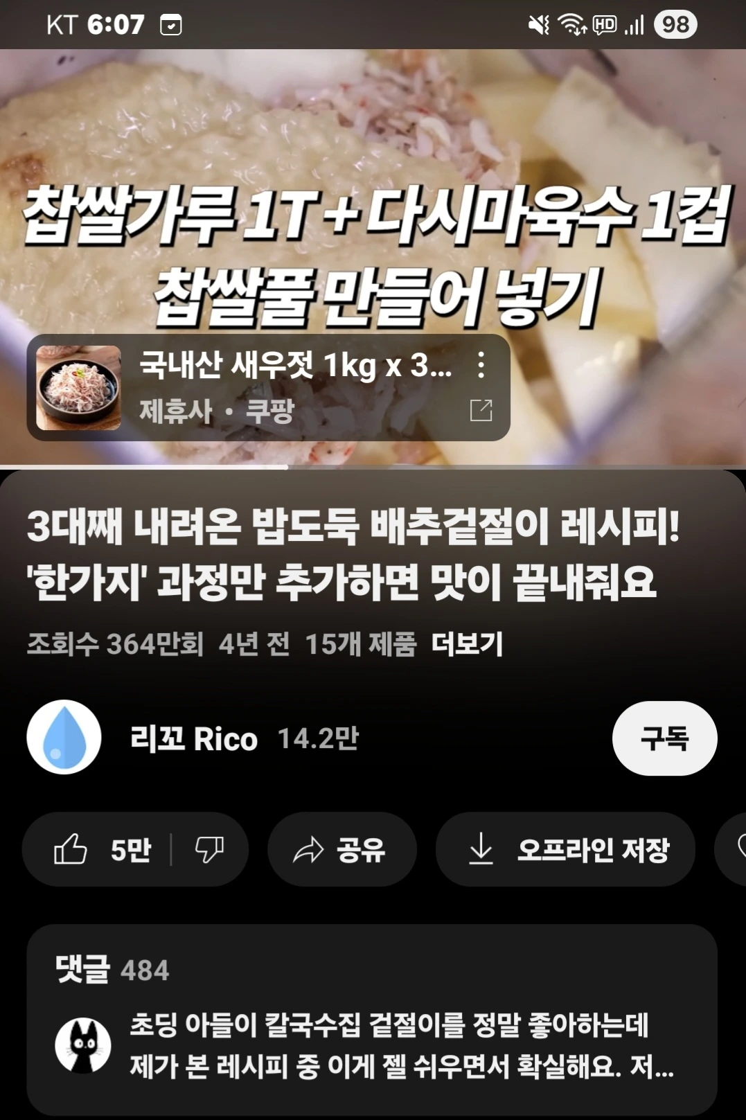유튜브에서 "겉절이"로 검색했다. 검색 필터를 조회수로 지정하고, 세상 사람들에게 가장 인기를 얻은 영상부터 보기 시작했다. 조회수가 많다는 건 많은 사람이 그 영상을 보고 따라 했다는 게 아닐까 싶었다. 그중 "리꼬'라는 유튜브 채널의 레시피 설명이 깔끔해서 따라 해 보기로 했다.