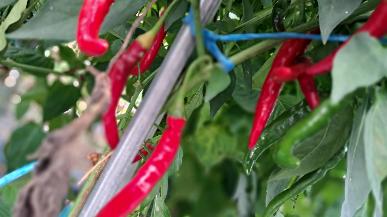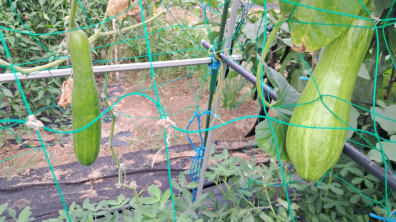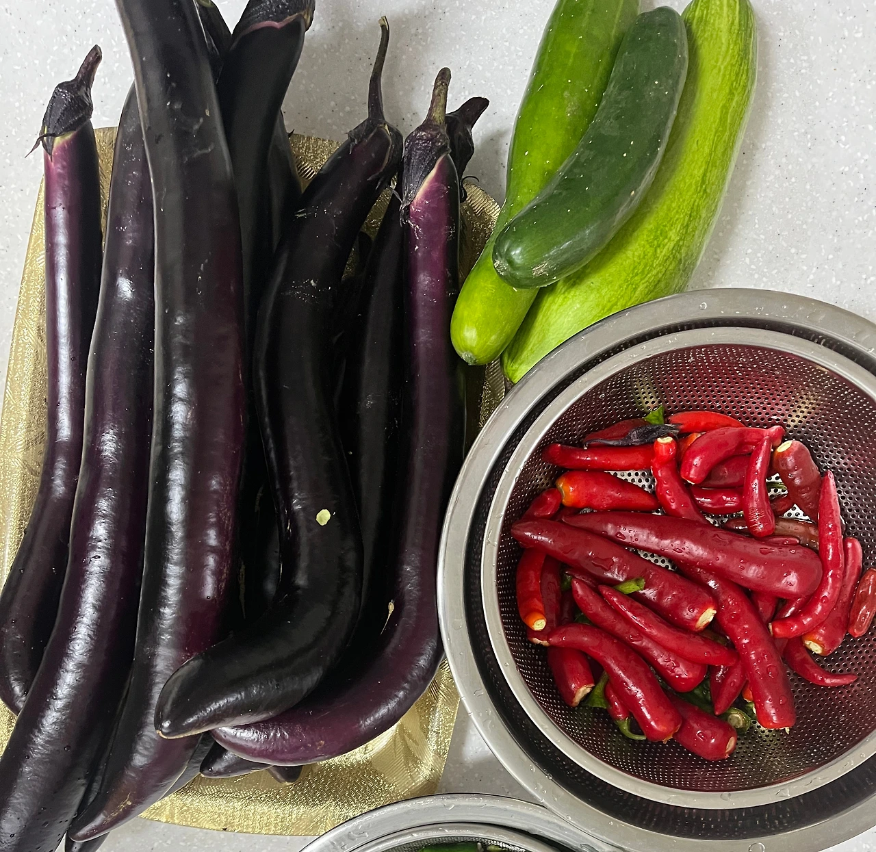 오이, 애호박, 가지, 풋고추, 빨간 고추를 수확했다. 빨간 고추와 가지는 건조기에 건조했다. 고추는 자르지 않고 원상태 그대로 가지와 건조하면 옆집으로 냄새가 이동하는 걸 막을 수 있다.