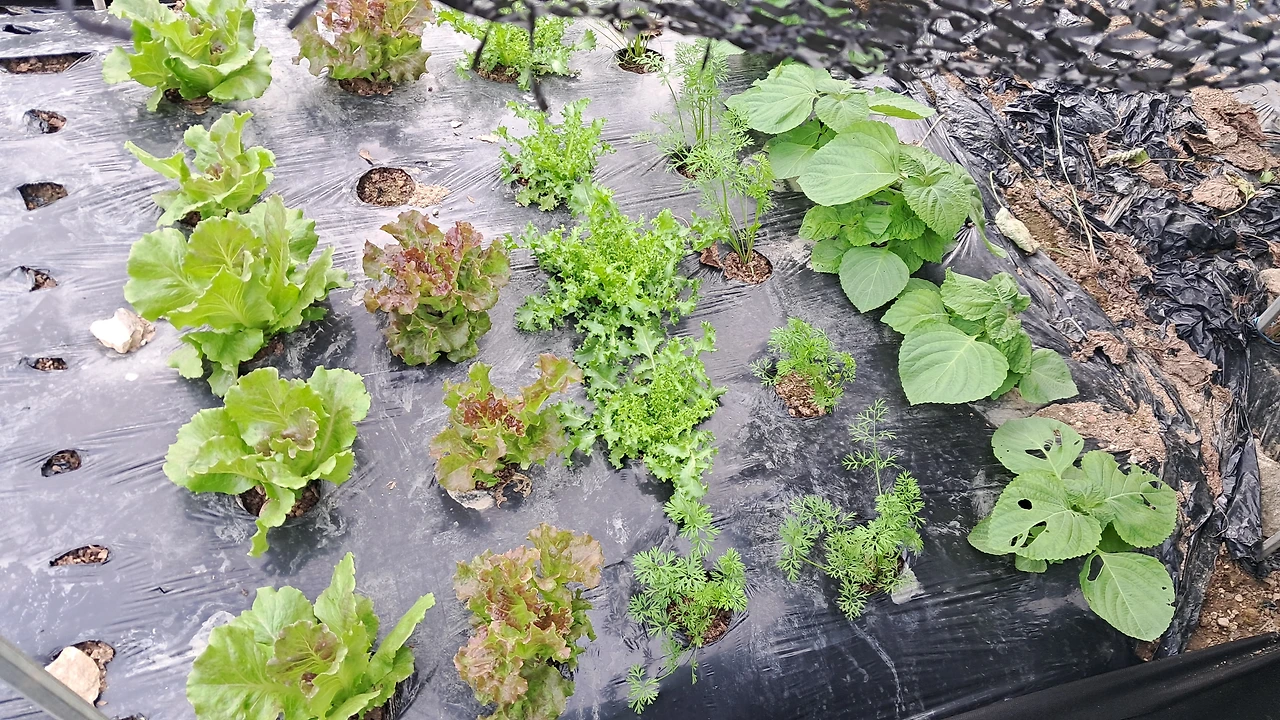 차광막 아래서 키우는 상추, 치커리, 깻잎, 당근은 보드랍게 잘 컸다. 폭염일 때는 차광막이 연한 작물을 기르는데 유용하다는 점을 깨달았다. 올해 처음 씌워보는데 하나씩 터득해 가는 재미가 크다.