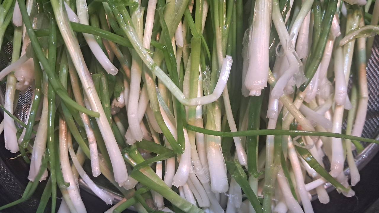 예정에 없던 쪽파 수확을 하기로 했다. 이미 칠흑처럼 어두워져 버렸기에 대충 쪽파 심어놓은 구역에 손을 뻗어 쪽파를 잡아당긴다. 쪽파가 맞겠거니 하고 마구 뽑아 담았다.