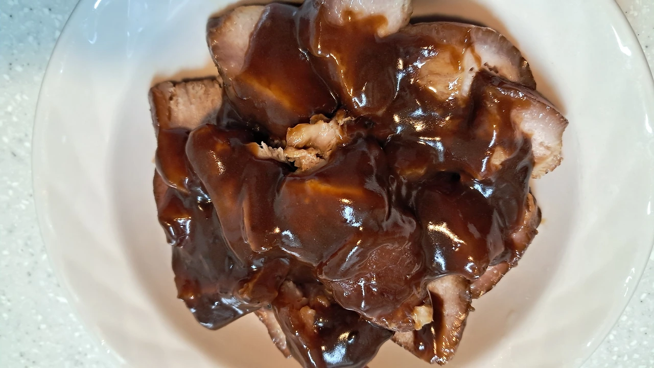 - 20분 후 냉동실에서 고기를 꺼내 두껍게 썬다.