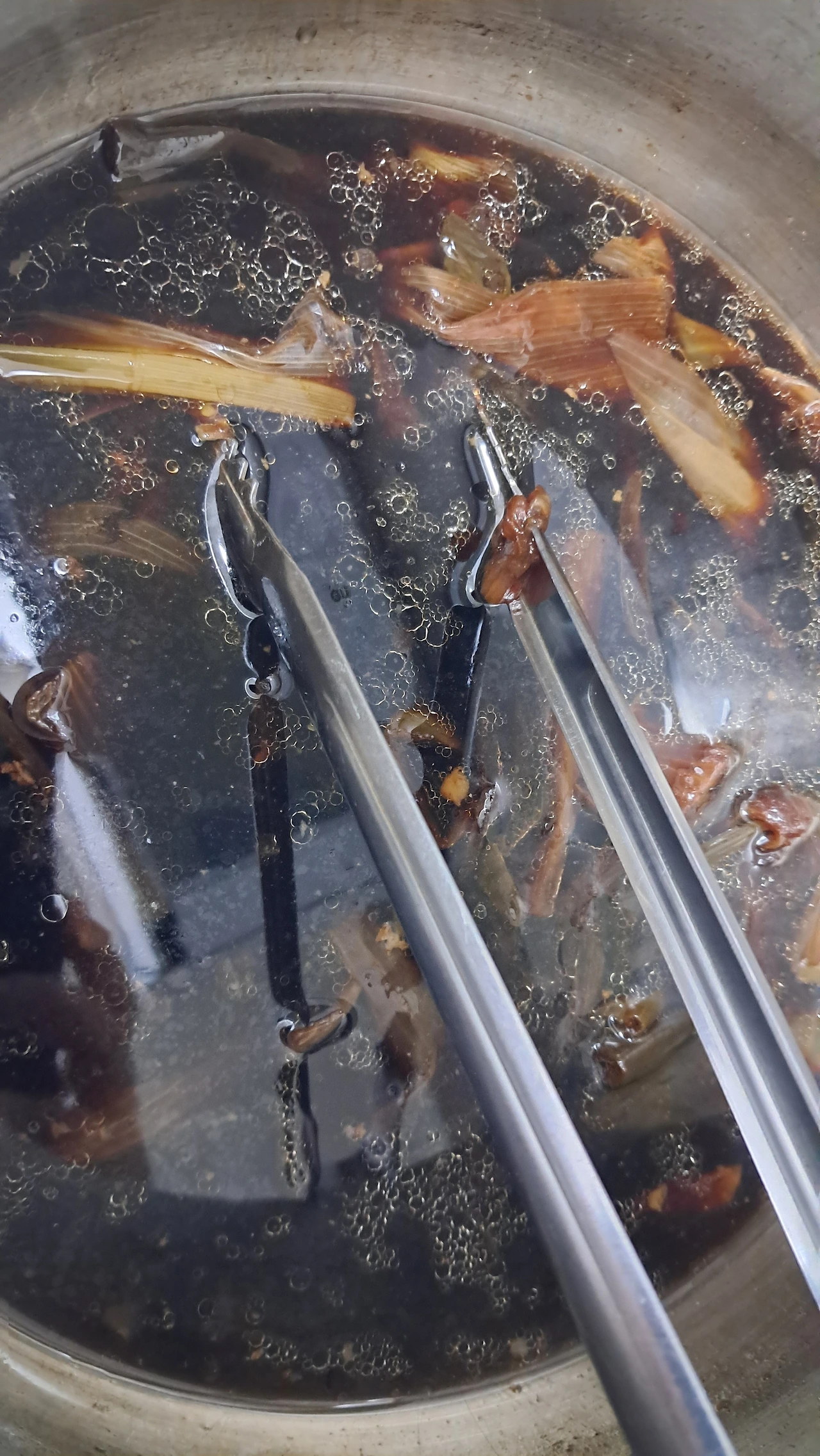 - 압력솥 바닥에 대파와 양파를 깐다. 야채를 먼저 깔아야 타지 않는다고 한다.