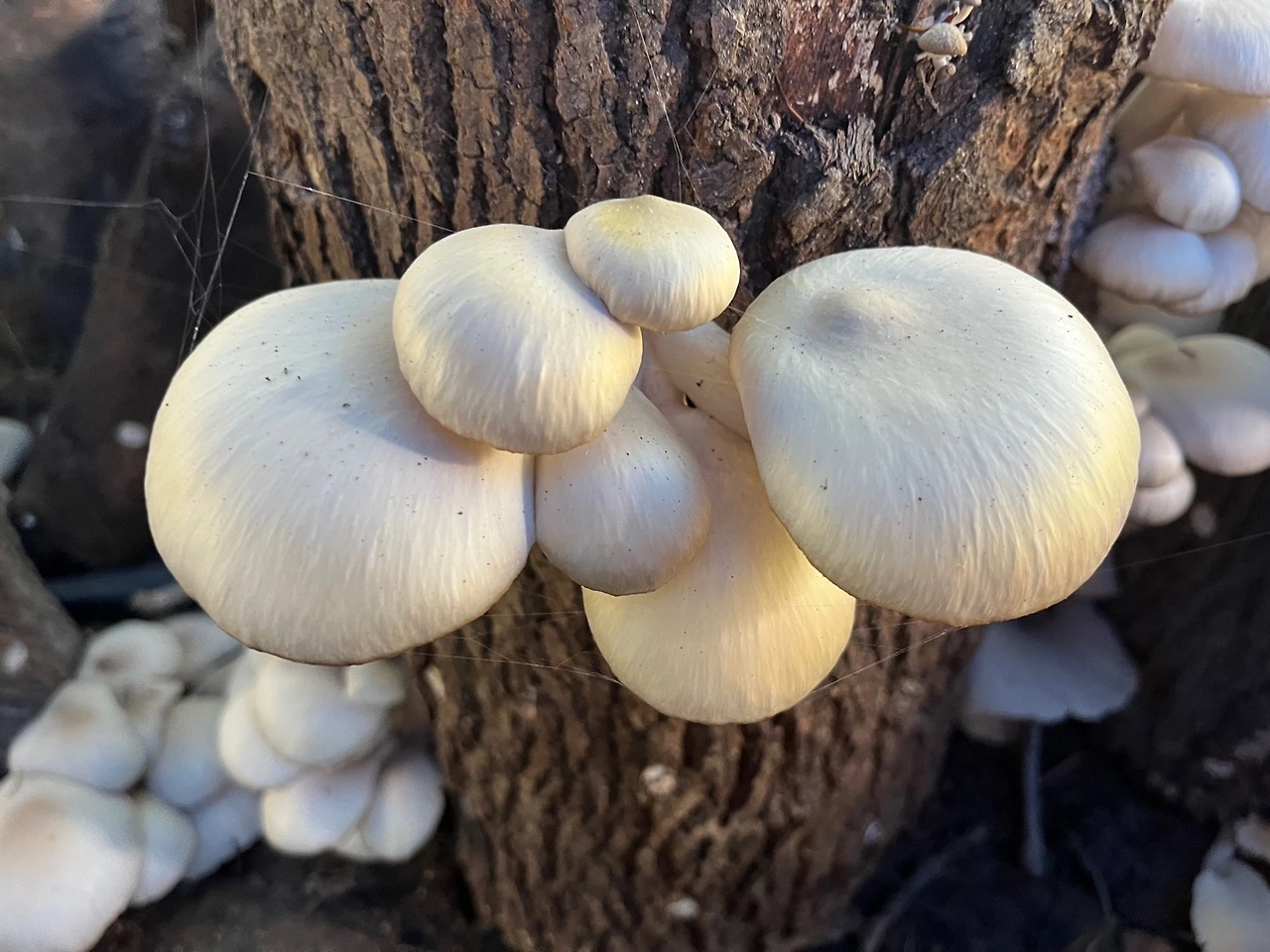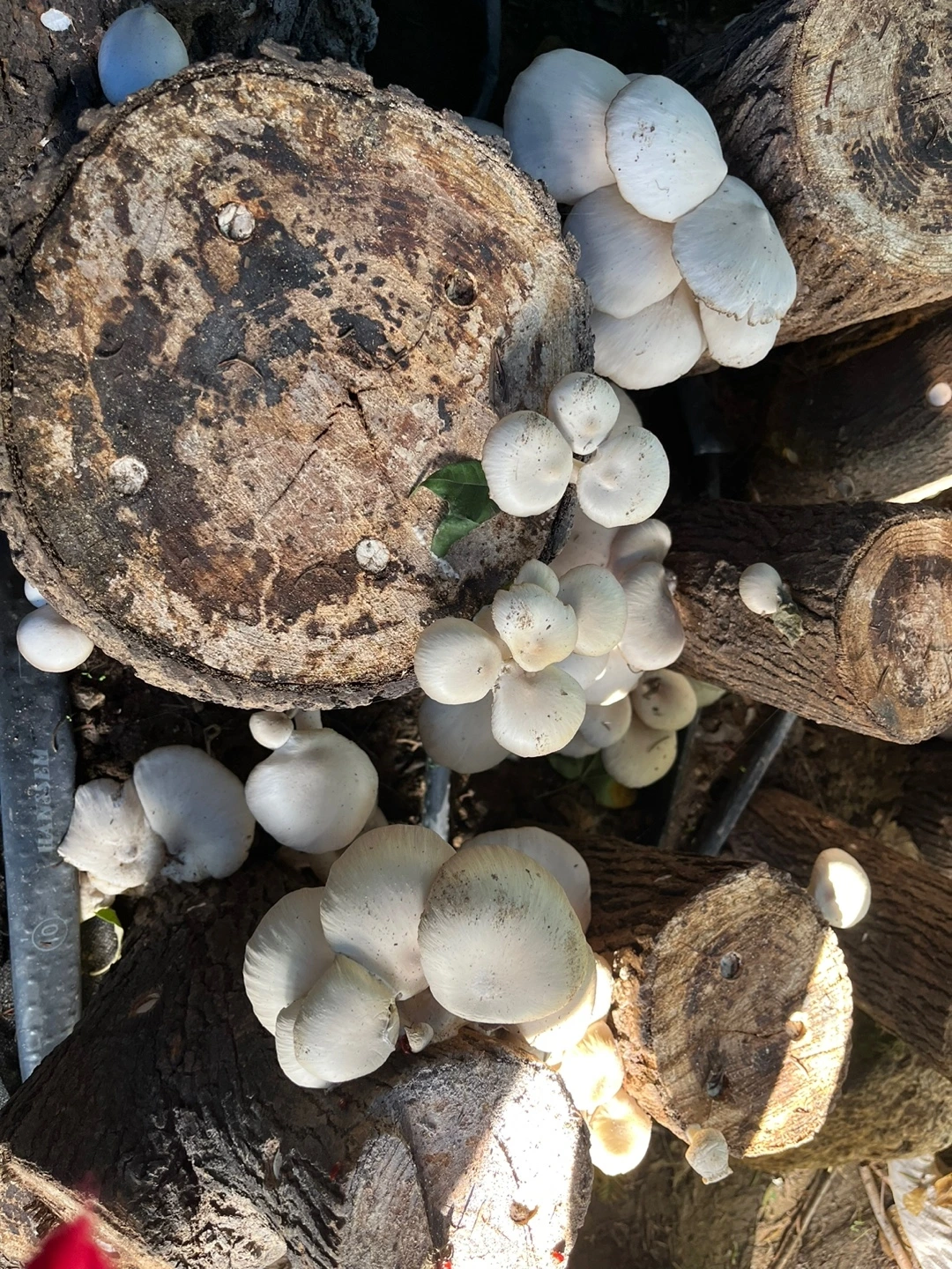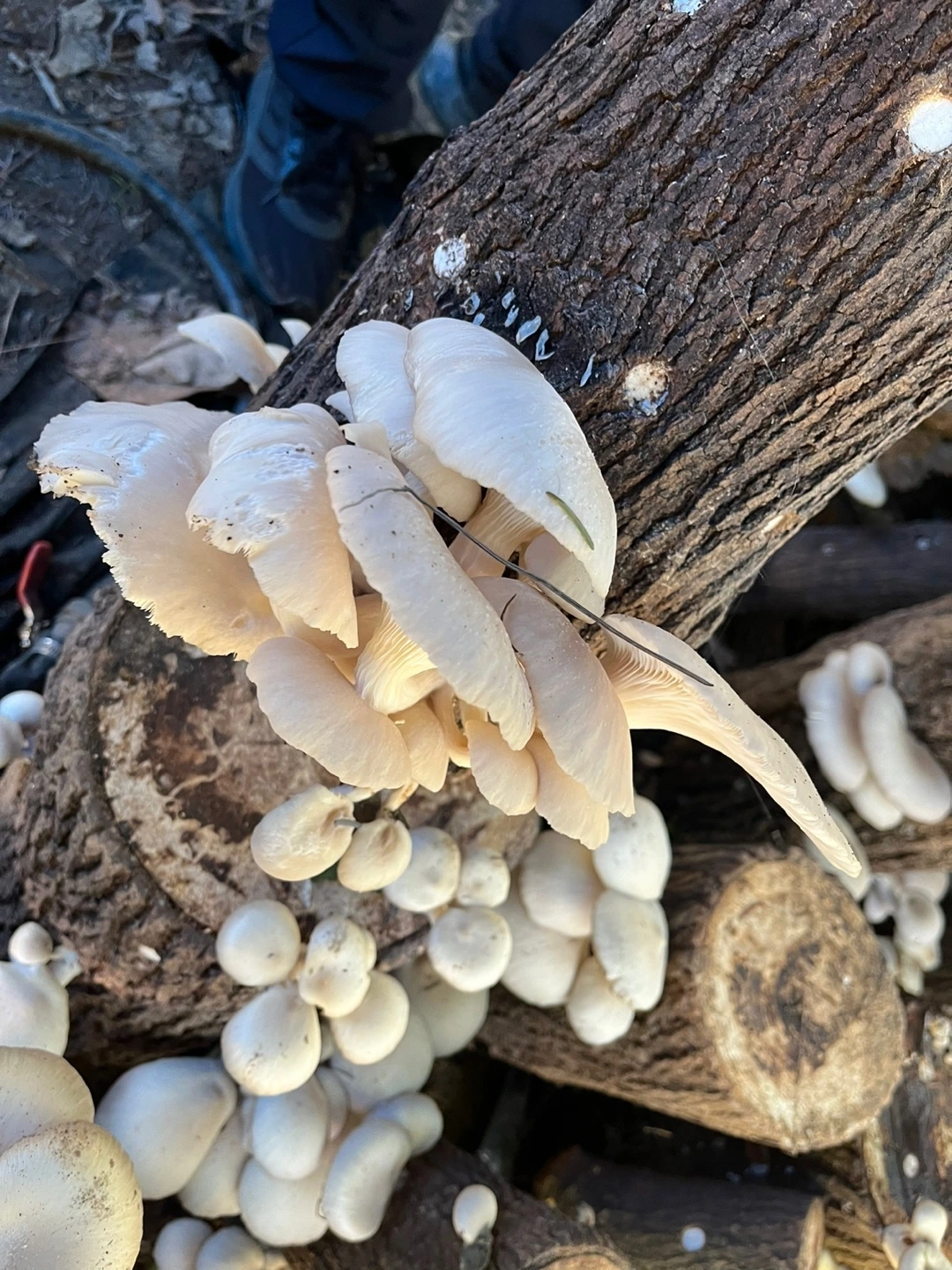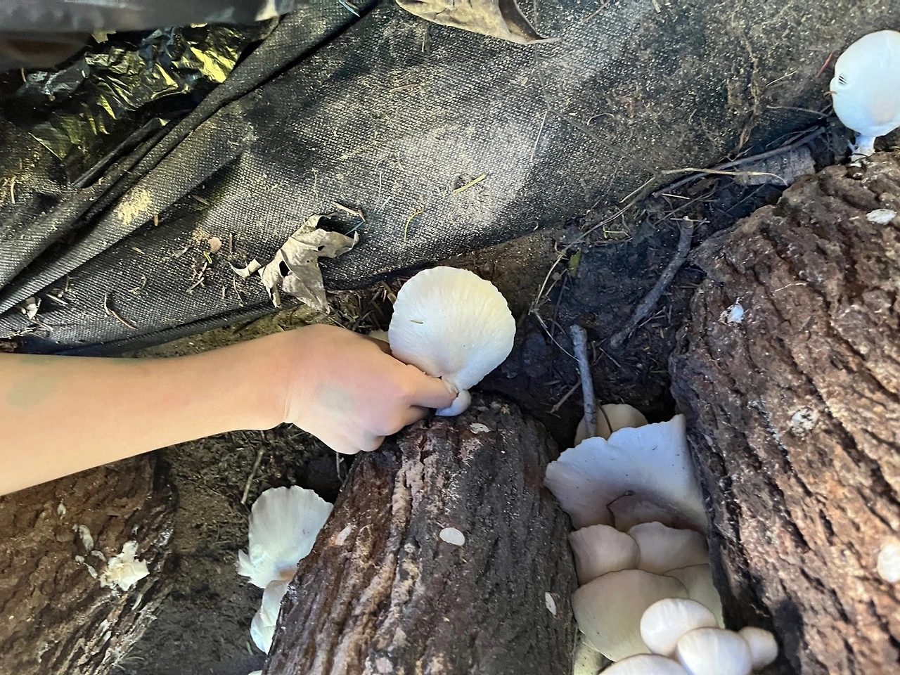 느타리버섯을 키우기 위한 공간은 성인 한두 명이 누울 수 있는 크기면 충분했다. 참나무마다 느타리버섯이 꽉 차 있었다. 버섯도 제때에 따주지 않으면 질겨진다고 한다. 자라는 속도를 소비 속도가 따라가지 못한다.