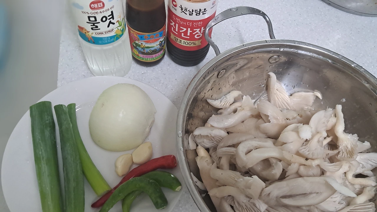 1. 버섯은 깨끗하게 씻고 헹궈 한입 크기 세로로 썬다.