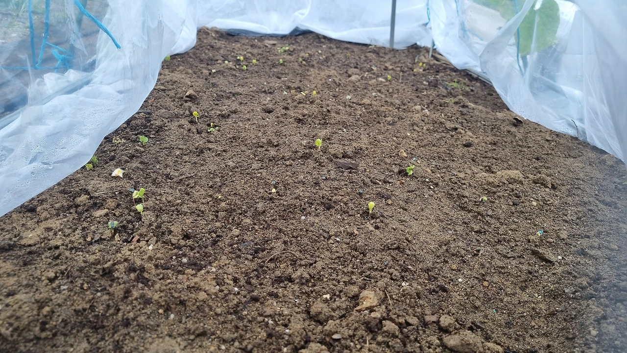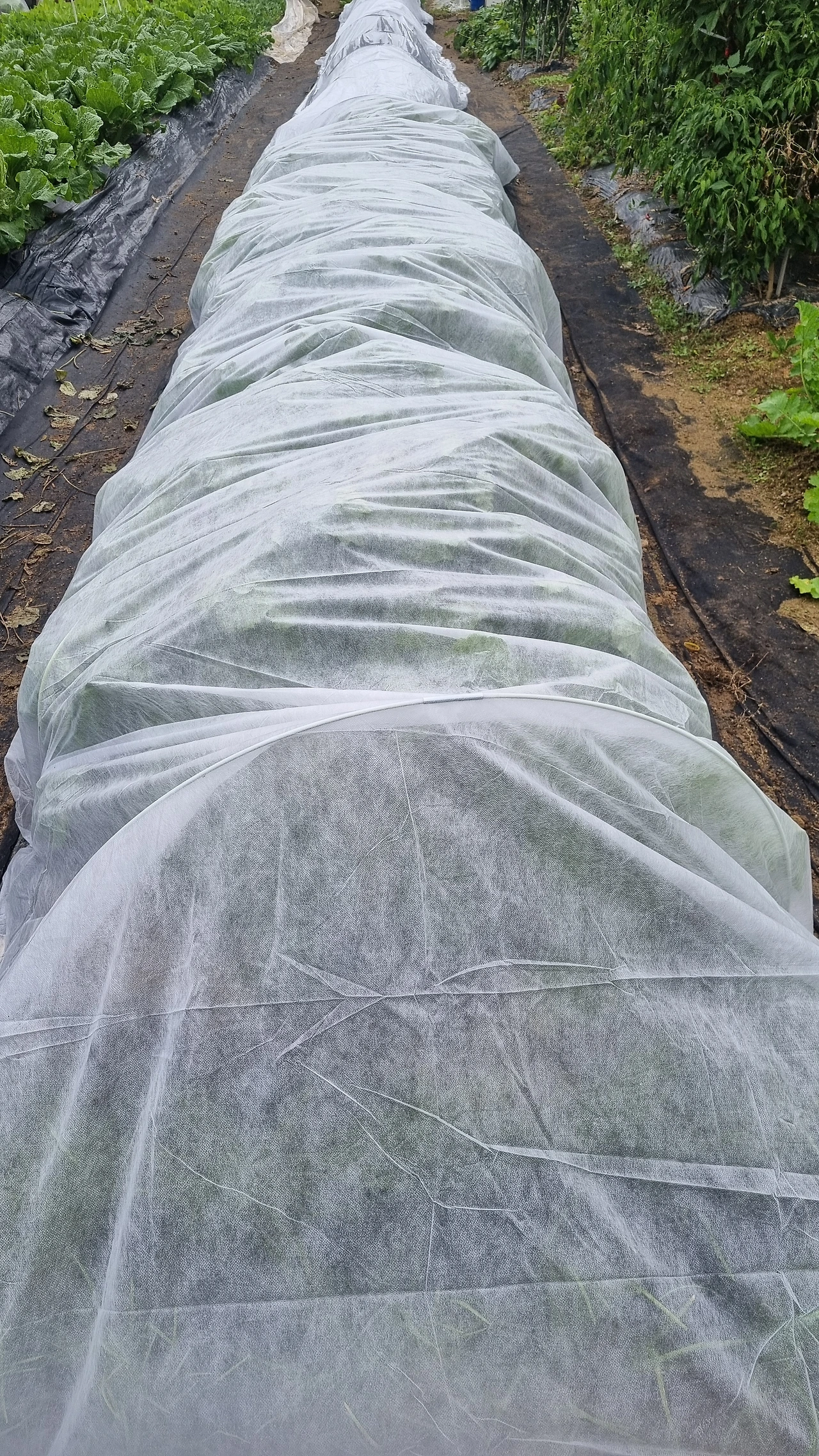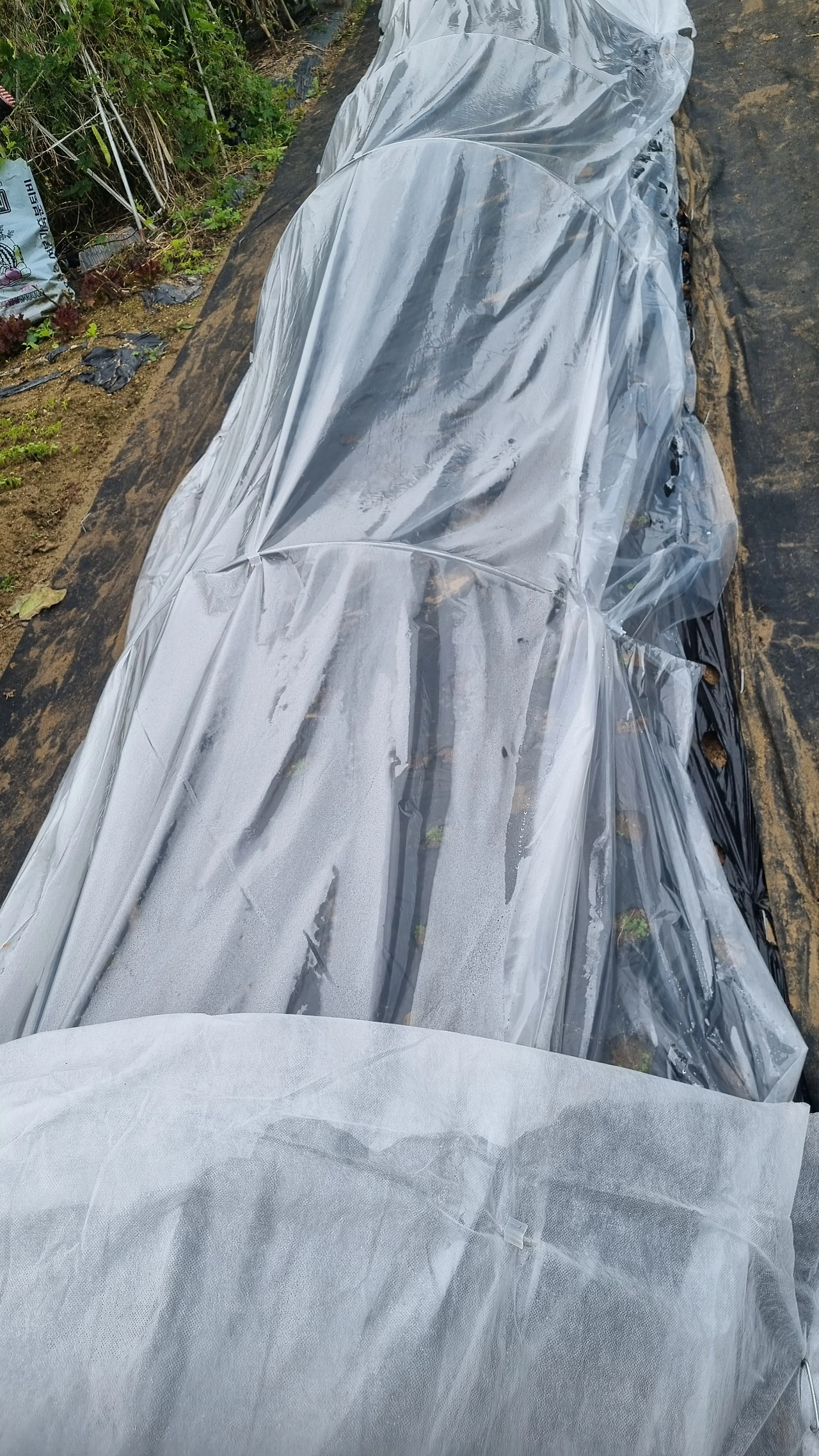 비닐 보온은 전라도 토종 가랏나물, 시금치, 봄동, 열무에 해줬고, 바람이 통하고 습기가 차지 않는 부직포 보온은 홍산마늘, 양파, 콜라비, 배추, 부추, 무에 해줬다.