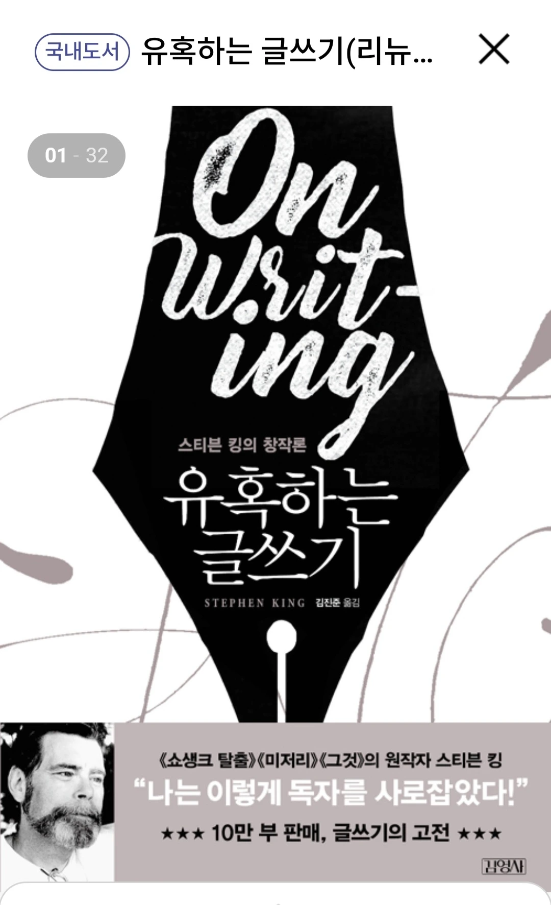 할리우드 감독과 제작자가 가장 주목하는 소설가, 영화보다 재밌고 박진감 넘치는 소설을 쓰는 베스트셀러 작가, 전 세계 독자를 매료시킨 스티븐 킹의 글쓰기 비결. 10만 부 판매, 글쓰기의 고전.