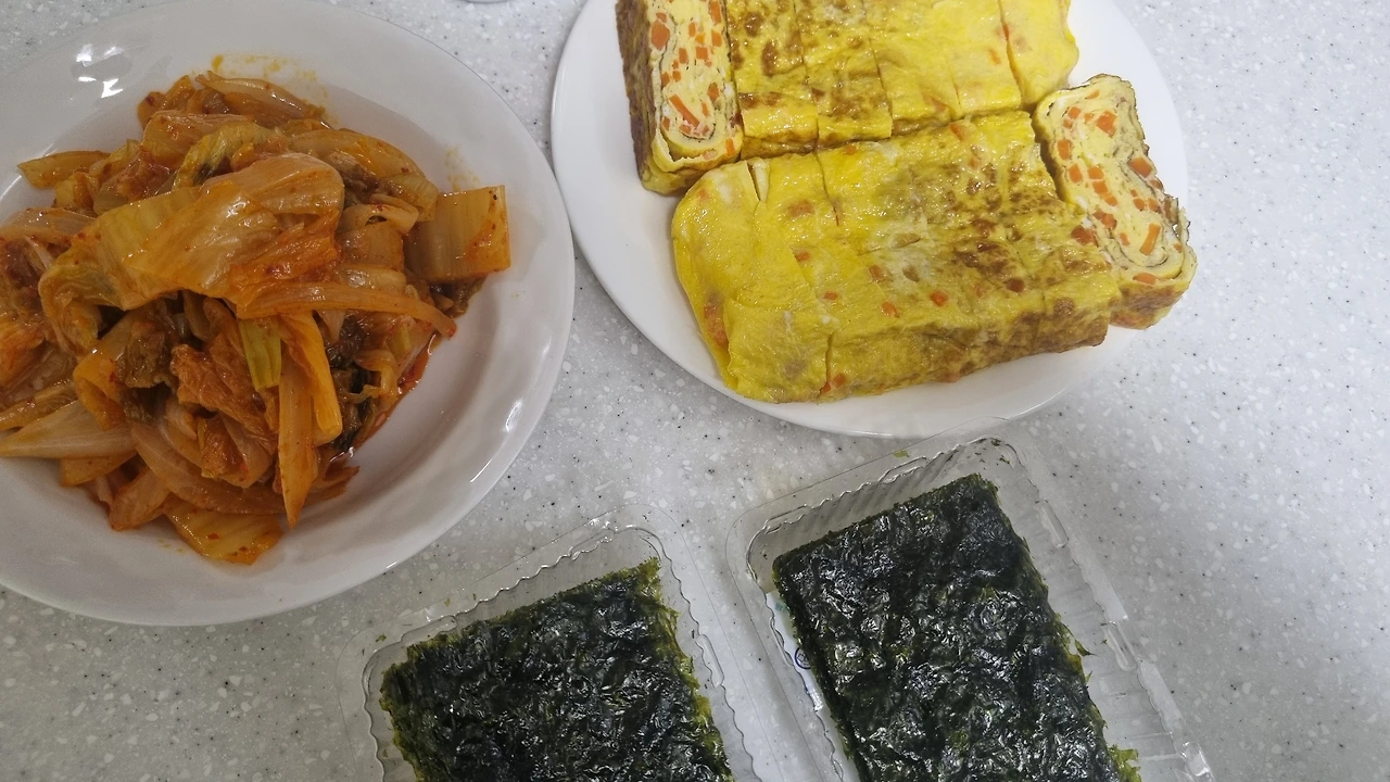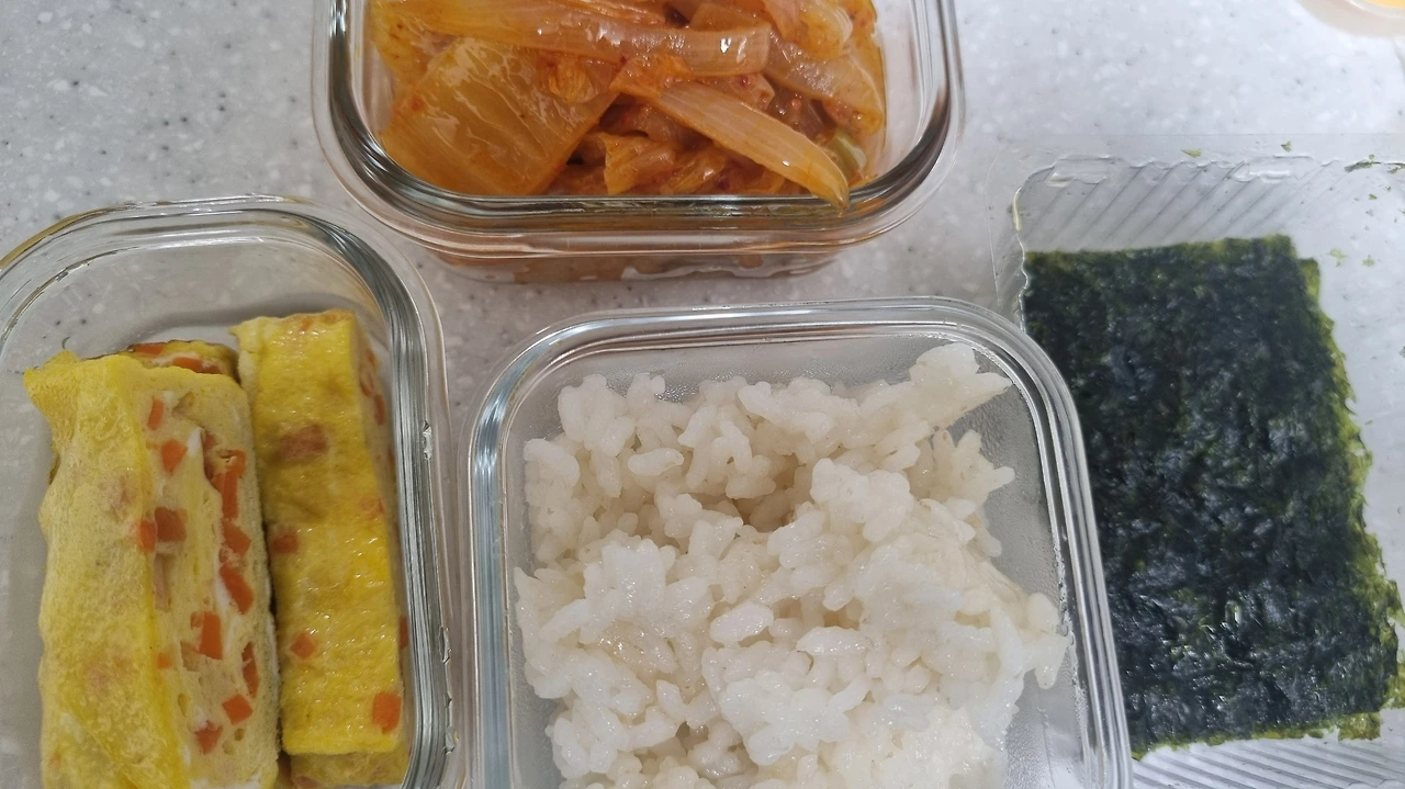 손이 큰 남편 덕에 오늘 직장 점심 도시락 반찬은 아이들이 먹고 남긴 계란말이 3개, 양파가 더 많은 김치볶음 그리고 김 세장이다. 냉장고에 반찬이 남는 걸 원치 않으므로 4년째 냉장고 반찬으로 직장 도시락을 싸다니고 있다. 매일 아침, 식재료 완전소비를 다짐한다.