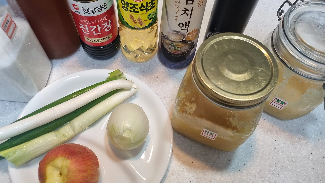 연예인 류수영 씨와 뉴욕 미슐랭 옥동식 셰프의 레시피를 섞었다. 그들의 레시피에서 '시판 배음료'는 빼고 사과 1개로 대체했다. 표고버섯을 추가했으며, 설탕 5스푼 대신 매실액 3스푼을 활용했다.