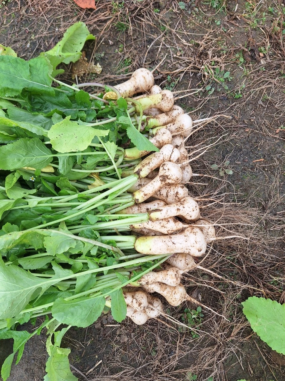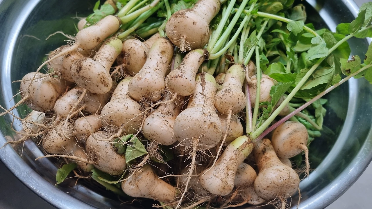 밭에서 알타리 무 한자루를 보고 기겁했다. 양이 많다. 5kg은 알타리 두 단이라는 사실을 밭에 가서야 깨달았다. 게다가 우리 집은 김치냉장고가 따로 없다. 지역에 지인 없이 딱 4인 우리 가족구성원만 의지하며 살아서 나눌 이웃도 없다. 큰일이다. 다행인 건 남편이 회식이라는 점이다. 째려봄은 피할 수 있다.