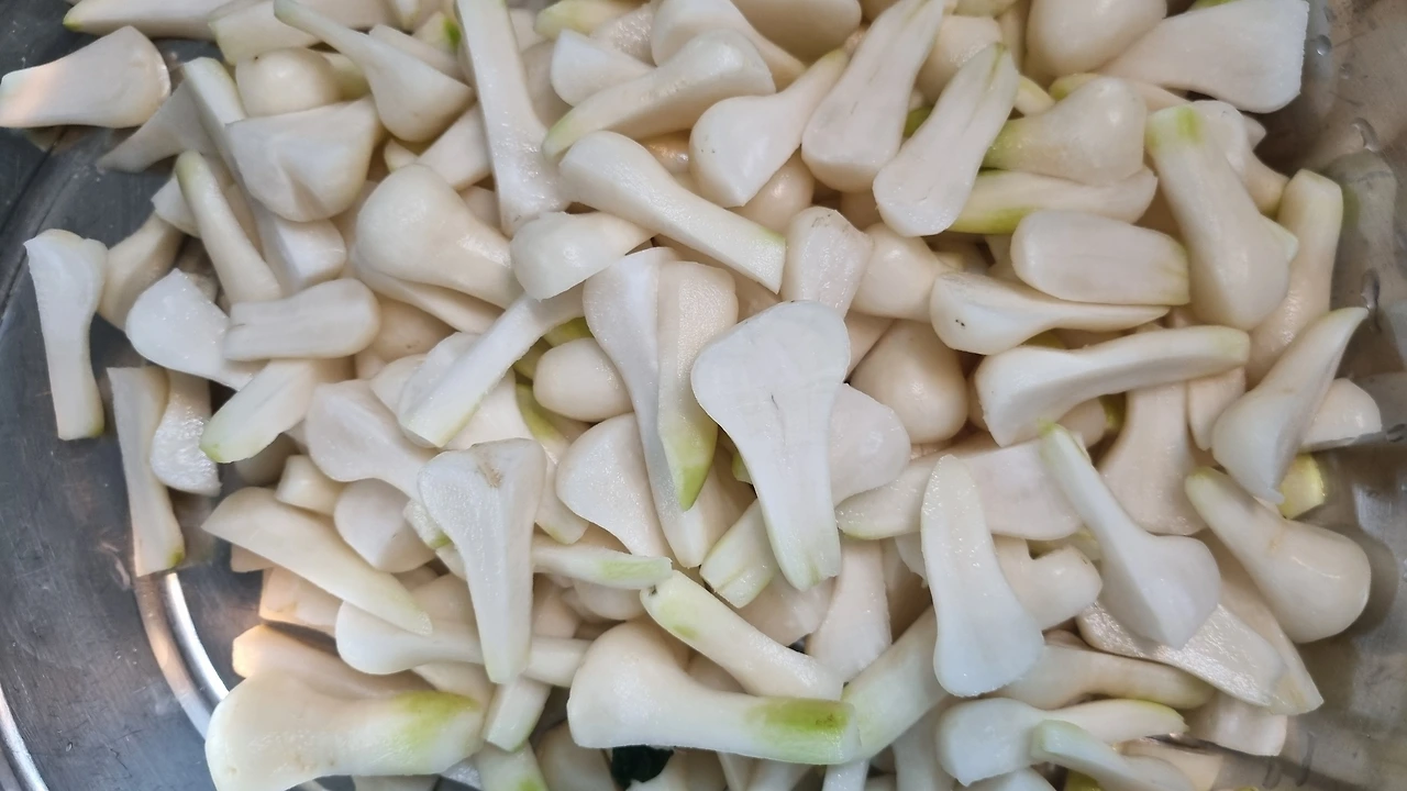 (내 노동력은 소중하기에) 알타리 무와 무청 사이를 댕강 잘라줬다. 원래는 그 사이를 칼로 긁어준다고 한다. No No 힘들다. 분명 시어머님께서도 댕강 자르라고 하셨을 것이다. 무청 꽁지도 한번 더 댕강 잘라주고 노란 겉잎은 골라냈다. 감자칼로 알타리의 겉면을 대충 깎는다. 칼로 굴곡진 부분을 2차로 대충 도려낸다. 무청은 칼질하지 않고 그대로 두었다. 이때만큼은 알타리 무 구입한 걸 후회했다.