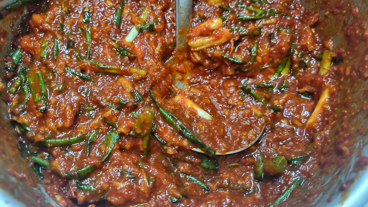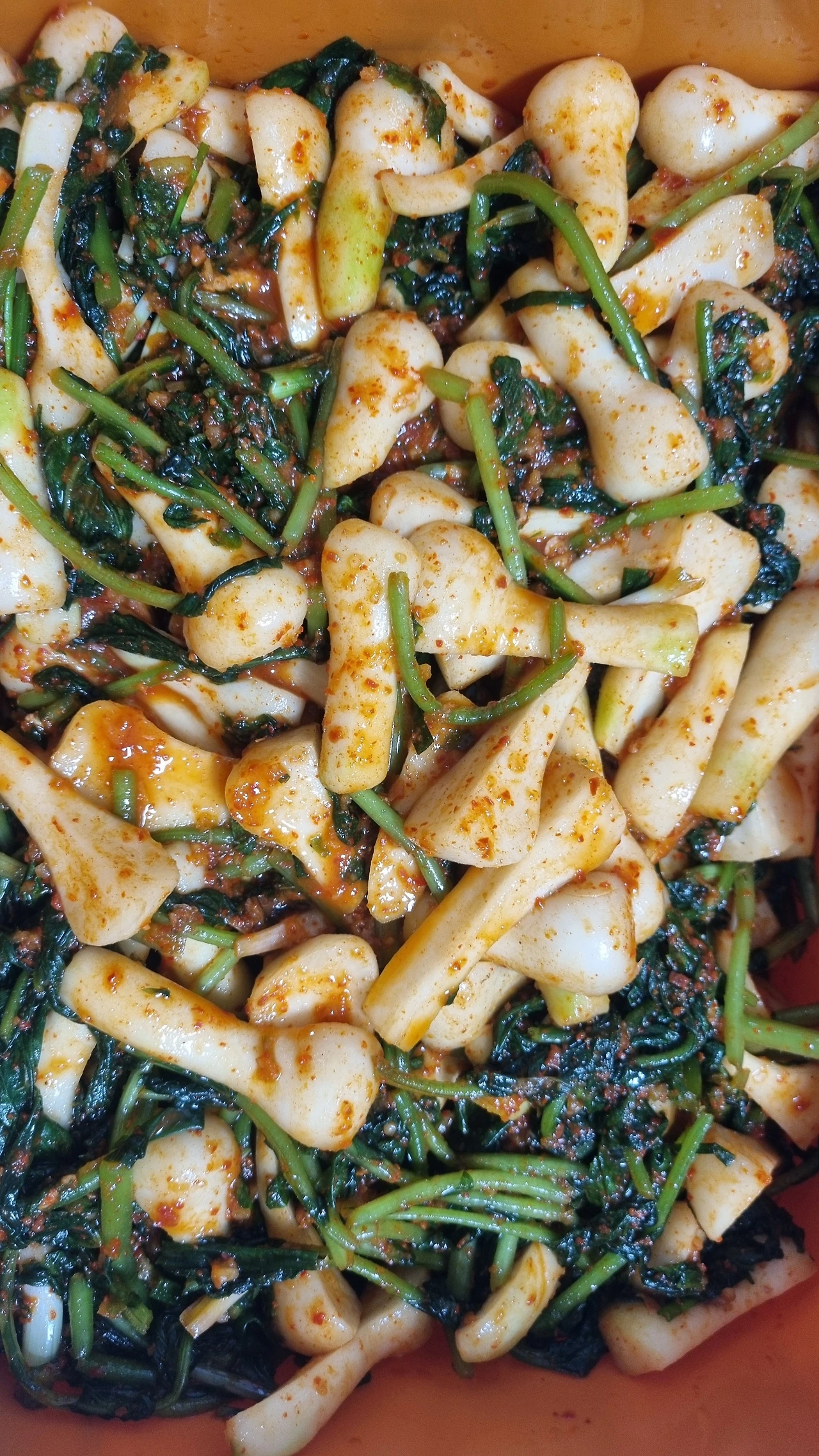 2) 다진 생강 1큰술(수제 생강청으로 대체), 마늘 4큰술, 멸치액젓 1/2컵, 매실청 1/2컵(대파청도 한국자 그냥 추가해 본다), 새우젓 1/2컵, 쪽파 한 줌, 소금 1큰술