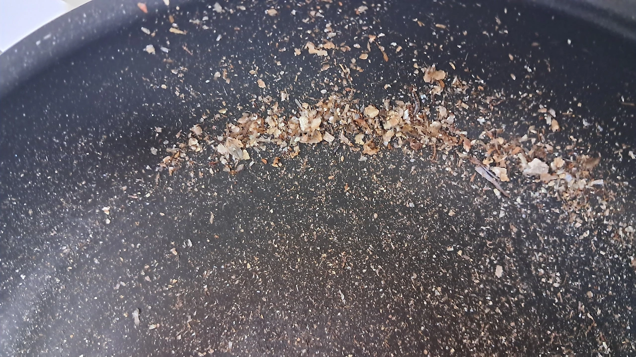 3) 구워진 멸치는 그릇에 옮겨두고, 프라이팬에 남긴 찌꺼기는 제거해 준다.