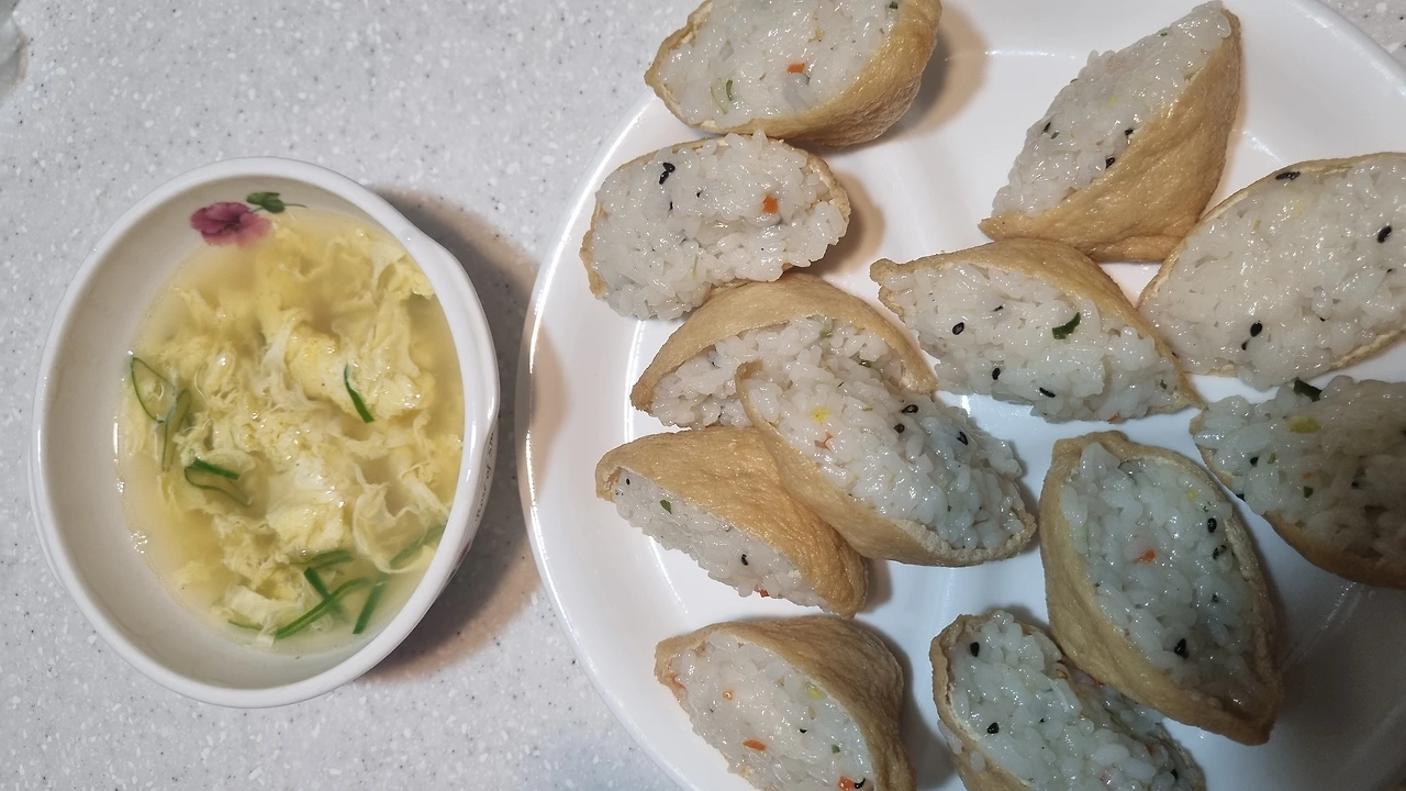 오늘은 유부초밥과 계란국이다. 남편은 딸그락 거리는 요리를 끝내자마자 출근 준비를 한다. 간간이 중 1 딸에게 기말고사 시험 범위중 사회교과 법 파트를 읽어오라고 신신당부한다. 직장에서 출제 예상 문제를 뽑아오려나보다.