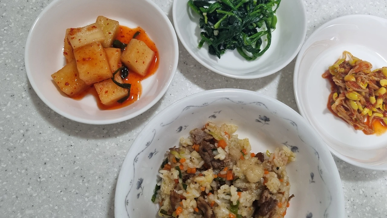 아침에 거실에 나와보니, 남편이 차돌박이 볶음밥을 해두고 출근했다. 아침밥을 볼 때마다 큰 벌을 받을 것 같은 생각이 든다. 15년 얻어먹고 있으니, 15년 벌 받을 일이 생길까? 아니, 휴직한 내가 차려먹어야 하는 거 아닌가? 남편은 아침식사를 차리는 action이 디폴트값으로 저장된 사람 같다. 엄마랑 같다